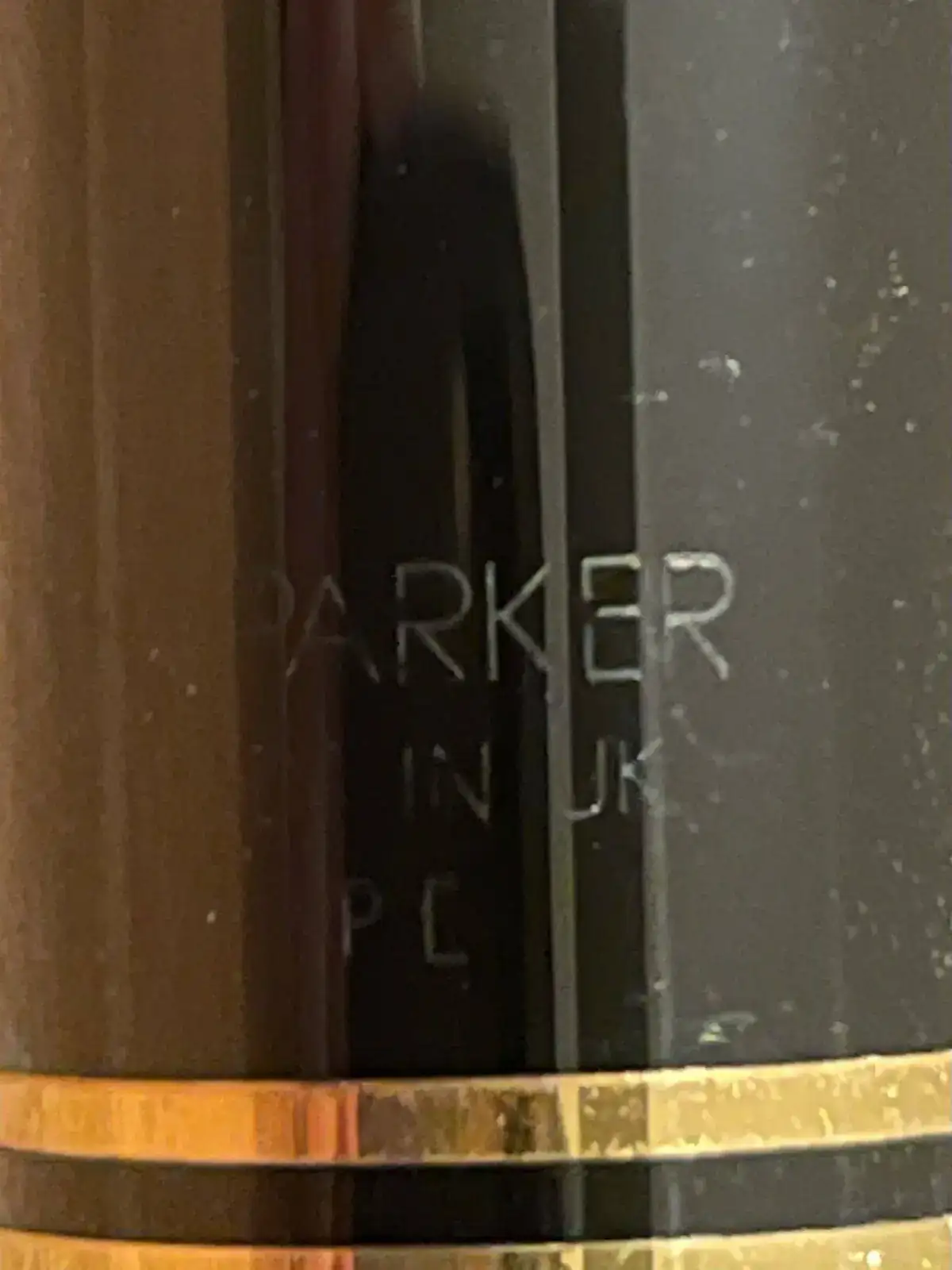 Yo tengo una en Burdeos(red marble) que es igual que la que tu tienes, pero en el alimentador pone "F" y luego en la trasera del capuchon " PARKER MADE IN UK IE) Parece que en la que tu tienes pone "PC" y esos detalles no veo lo que significan por ningun sitio.