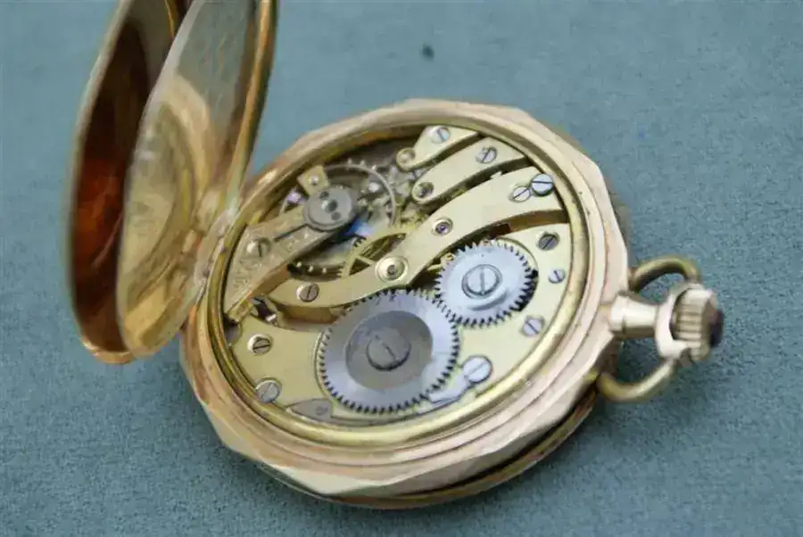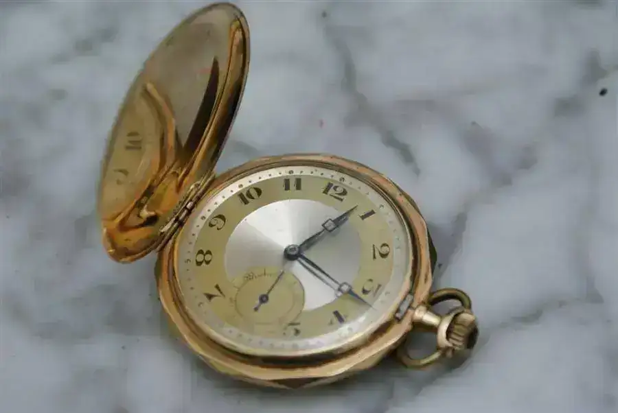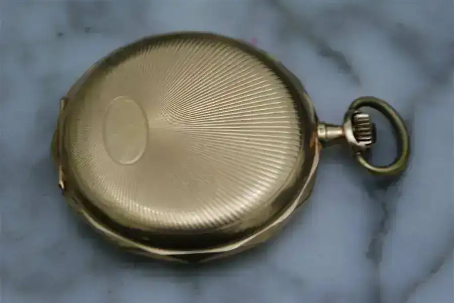 Es un reloj de bolsillo de oro de 14k, lleva una cinta con la fecha 18-8-28 y el nombre de mi abuela, no he podido averiguar que son las iniciales que tiene en la tapa " G J F", el único que he encontrado es George Favre Jacot.