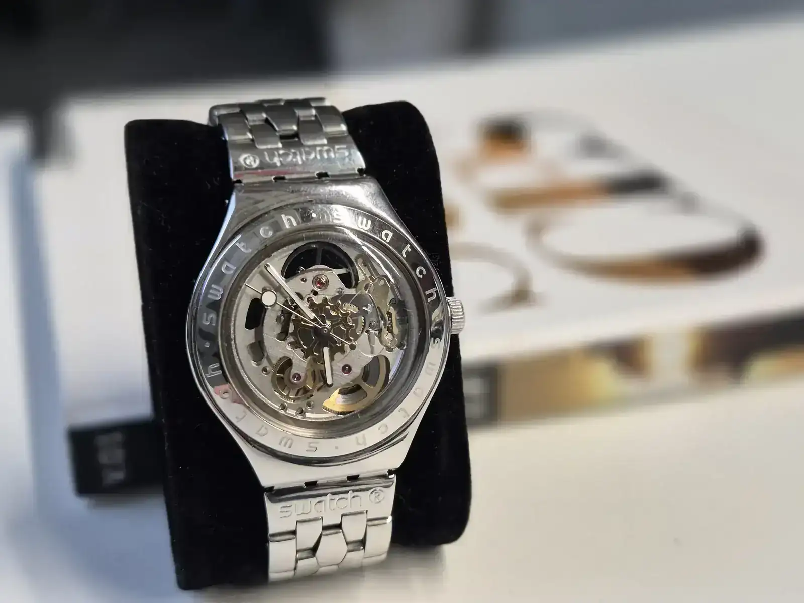 Después, ya cuando tuve mi dinero y sin ningún tipo de idea me compré mi primer reloj "serio", un "Swatch Irony Body & Soul", automático skeleton, que me costó la friolera de 10.000 pesetas.