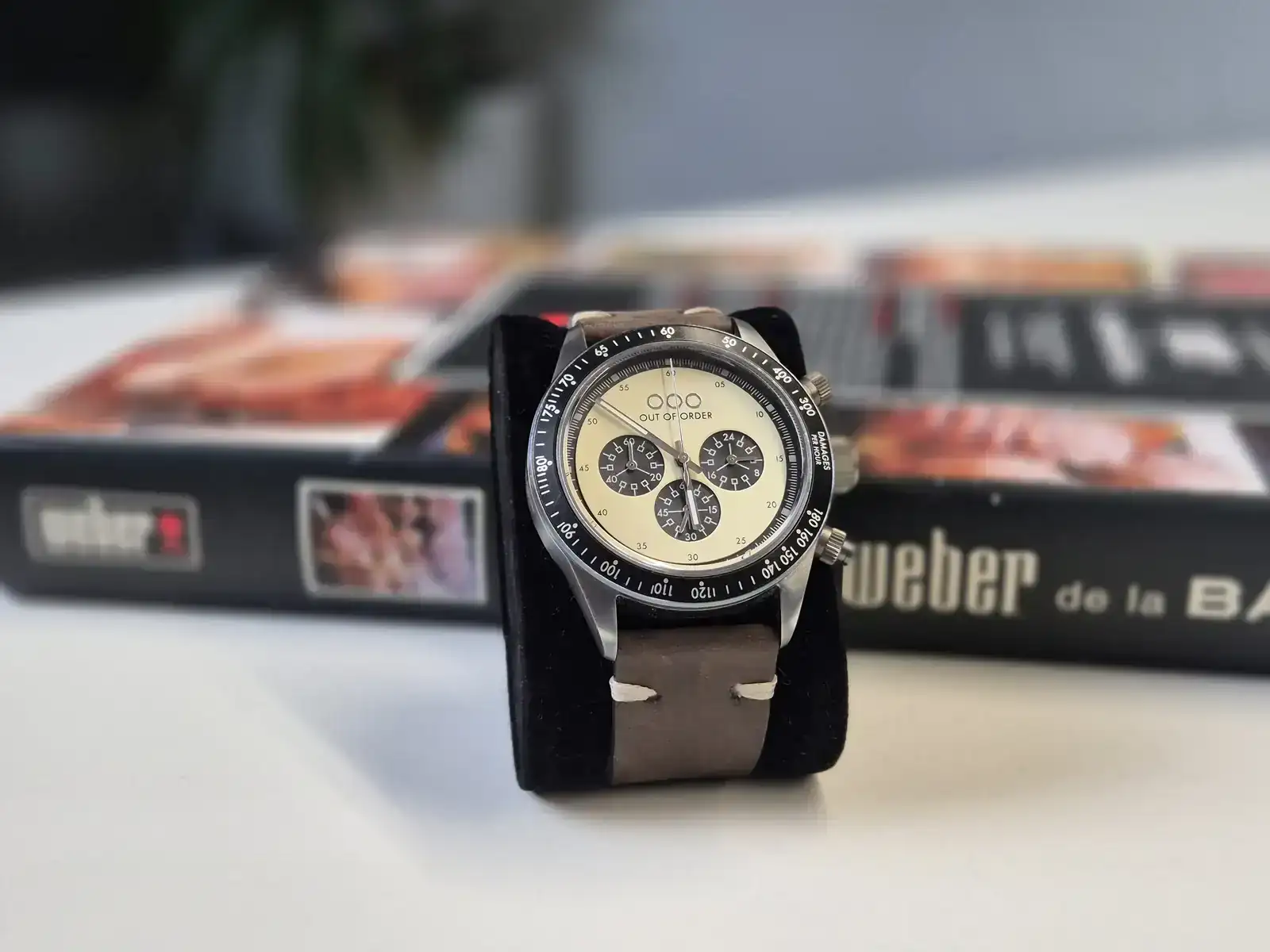 - Y mi favorito por el momento: Un Out Of Order Super Vintage con clara inspiración Daytona. Un cuarzo en apariencia básico pero super sólido con coronas roscadas y que me ha sorprendido por su diseño (el acero con acabado "manchado" con ácido es una pasada) y con cómo luce y su comodidad al llevarlo.