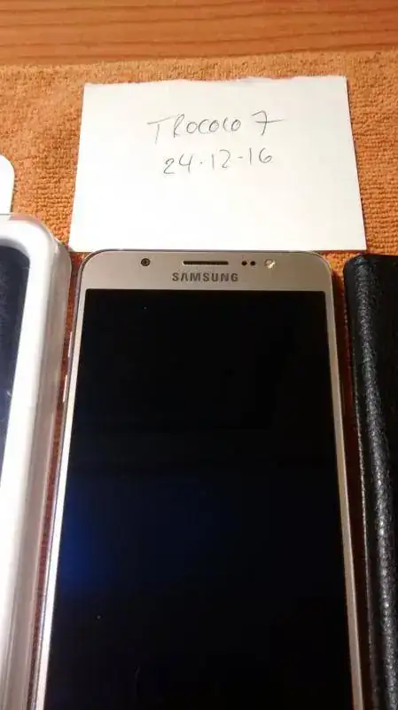 Samsung Galaxy J7 (2016) libre de origen dorado con dos meses sin apenas uso. Está perfecto, como nuevo. Pantalla de 5,5", Android 6.0, batería súper duradera de 3.000 miliamperios, 16 GB, 4G etc, etc, etc.. Completo, con su caja (he de reseñar que le falta una de las lengüetas de apertura de la caja, porque estaba durilla y terminé rompiéndola, pero no tiene la menor importancia, al menos para mi), auriculares sin estrenar, cargador y cable, todo perfecto. Adjunto funda original más otra funda, las dos al 99,9%. Lo vendo porque me va a caer un iphone y dos son multitud