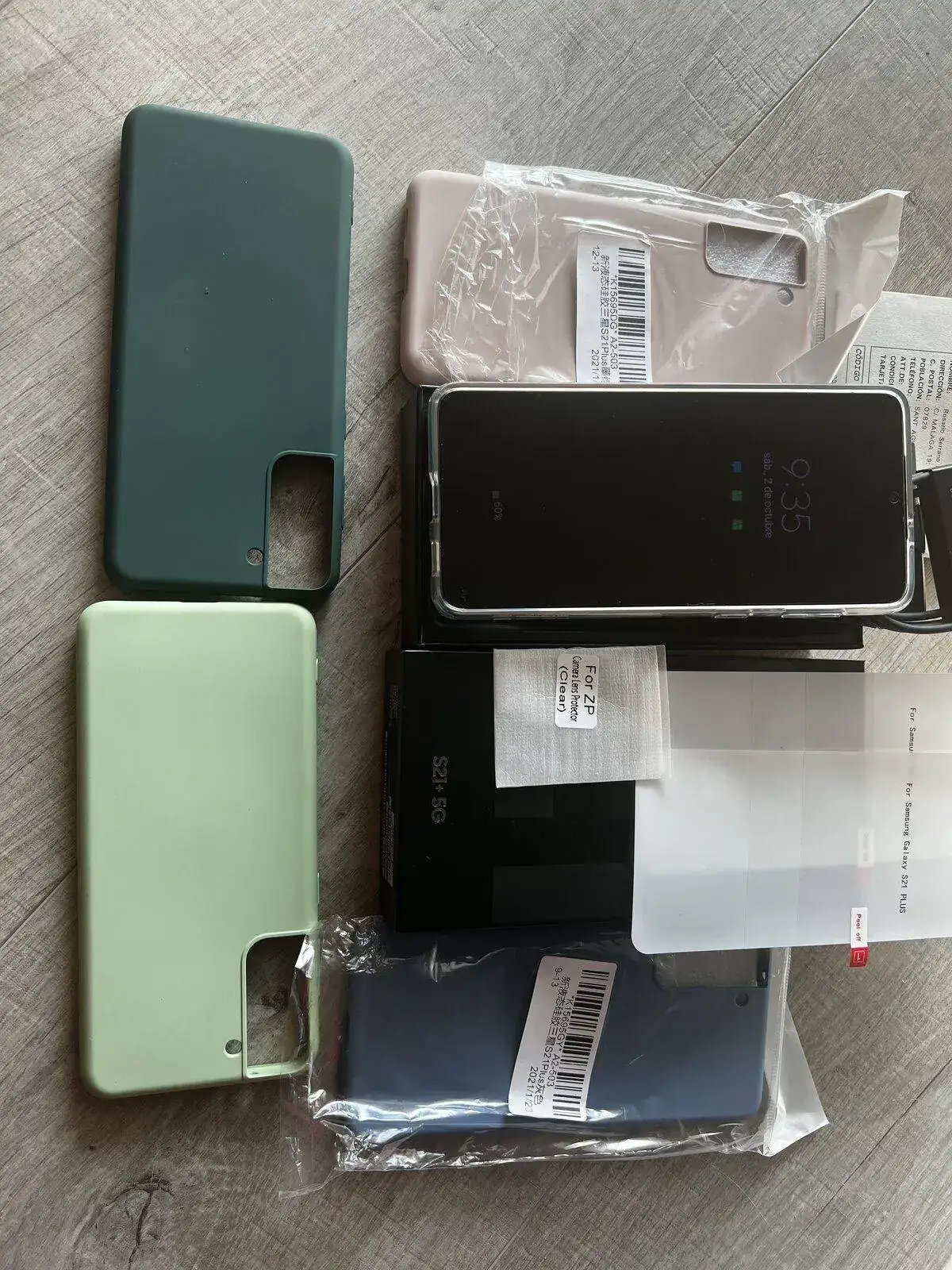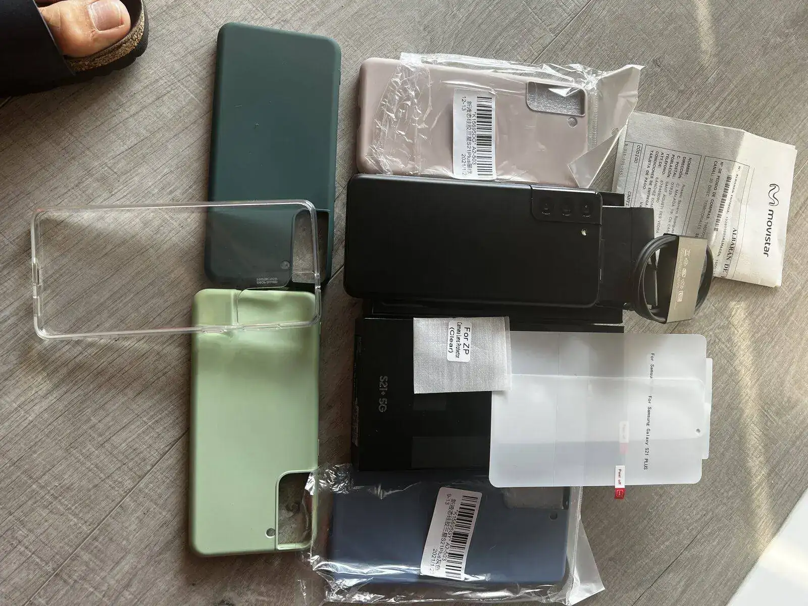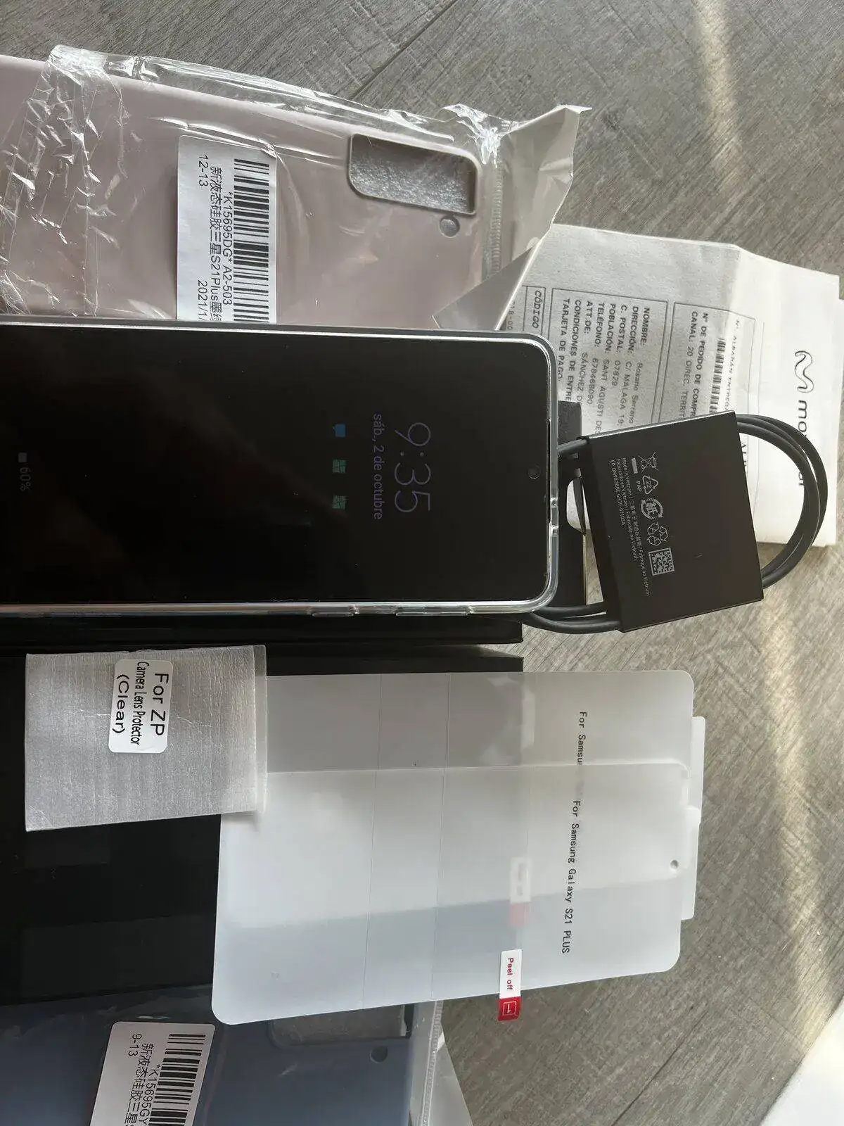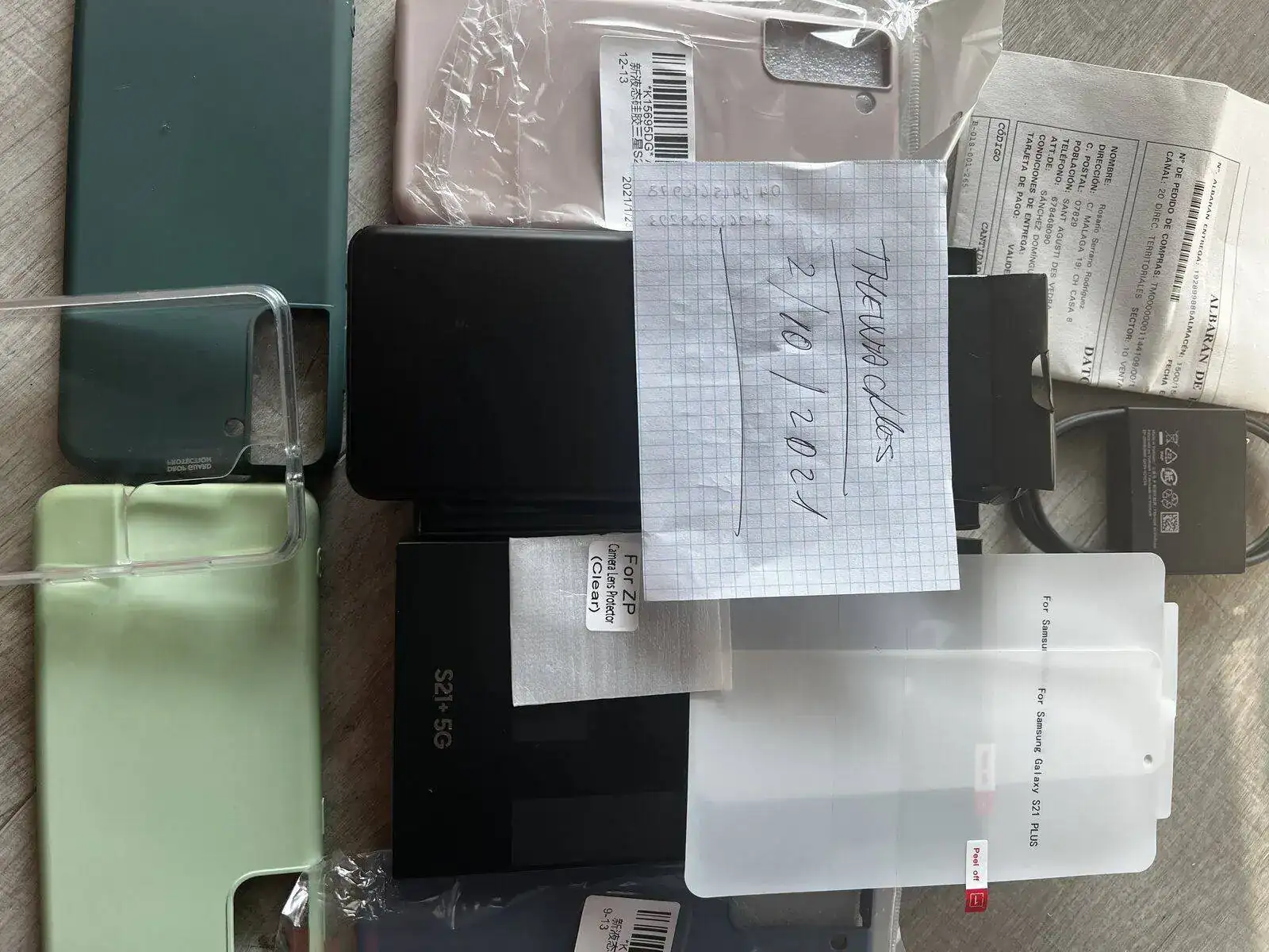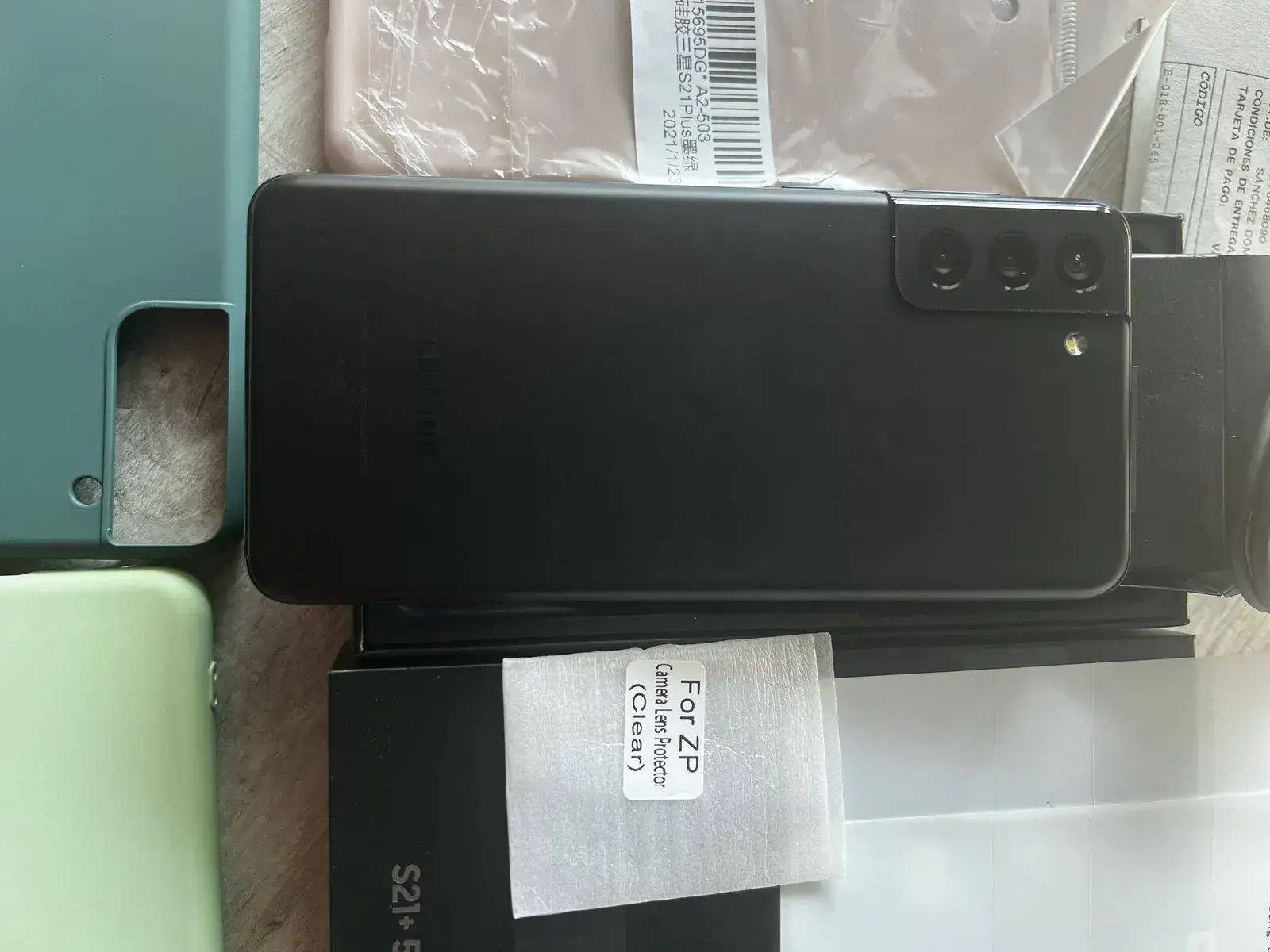 Samsung Galaxy s21 plus 5 g. Es de 128 GB,Cómo se puede ver esta completo y con 5 carcasas de buena calidad a externar,2 cristales para las lentes y 2 protectores de gel para la pantalla.Tiene su factura de garantía la cual está en vigor todavía.lleva su cable para la carga pero sin enchufe. PvP en casa 550