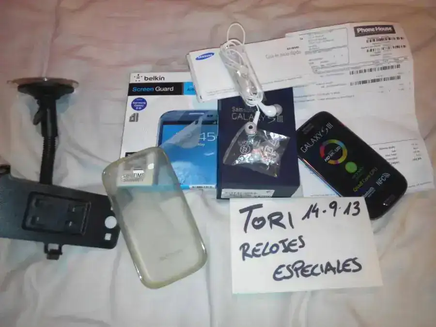 Hola a todos , pues lo dicho , me lo regale con todo mi cariño para estas navidades ( fecha exacta el 12 del 12 del 12 jejeje ) y como la tecnología va a si de rápido y algunos somos caprichosos pues eso...tenia pensado regalárselo a mi MDD pero no pudo ser jejeje asi que a la venta . El móvil esta IMPOLUTO , ni arañazos ni microrayas ni la pantalla mal ni rayada...esta IMPECABLE , siempre ha estado en su funda y con protector de pantalla , esta de reestreno , solo tiene 9 meses , se entrega con todo , caja , instruciones , auriculares sin usar claro , recambios de los mismos sin abrir y la factura de compra en the phone house con la fecha que arriba comento , los extras de los que hablo son una tarjeta Microsd de 16gb , que tenia y dejo dandole 32gb de capacidad , su funda original de samsung ( esta si esta usada claro , los roces que no van al móvil van a la funda ) un protector de pantalla sin usar y un soporte para el GPS del coche ( no es genérico , es especial para el S3 ) , el teléfono es libre de origen ( se puede ver en la factura , que sirve para los 15 meses de garantía aun vigente ) los detalles del teléfono no los pondré porque son de sobra conocidos así que espero haber detallado su estado que es lo que importa , el precio de este móvil sin extras nuevo esta en 349€ , si tuviera que sumarle los extras ( no se vende por separado!! ) podría alcanzar los 400€ , debido a su estado pido por el 300€ envío incluido , es decir si eres de Madrid y te acercas a por el pues descontamos el envío , 285€ por redondear , en fin os dejo la foto...mala foto y cualquier cosa por privado o preferiblemente al mail [email protected] .