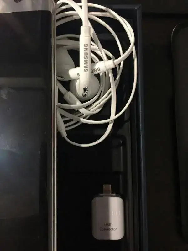 Lo entrego con toda su dotación: caja original, auriculares sin usar, cargador con cable usb y conector usb para poder introducir un pendrive u otro dispositivo y compartir archivos.