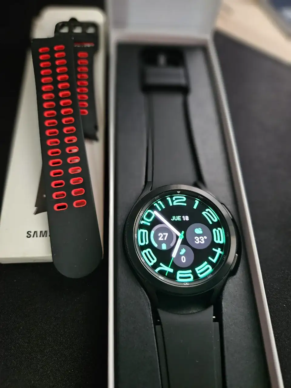 Saco a la venta este estupendo galaxy watch 4 classic en perfecto estado, un reestreno total. Lo he usado más que nada para cacharrear con él e instalarle cosas, pero apenas ha salido de casa. Lo entrego con todo lo que trae, su factura del 28 de mayo de éste año y una correa extra. Le pongo un precio de 99 euros más envío a cargo y elección del comprador. Cualquier cosa podéis escribirme un mp. Un saludo y gracias por leer.