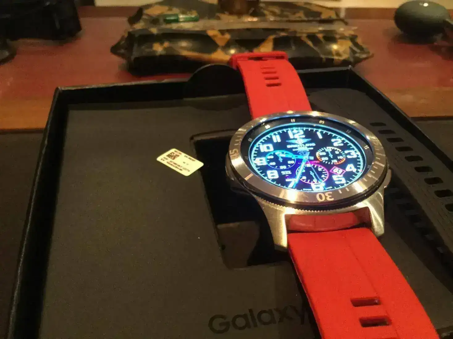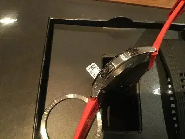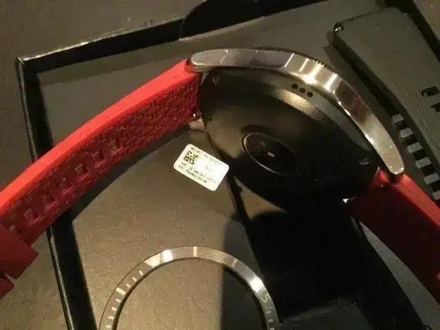 Está en perfecto estado , casi de reestreno, ni un arañazo ni nada. Todas sus cajas papeles y su garantía casi completa, ya que lo compré el 18 de enero de este año. Tiene su correa original negra con dos trozos diferentes para muñecas más y menos grandes y una correa roja que le va al pelo. También tiene un bisel plateado que se pega encima del negro por si quieres darle una apariencia diferente. Y su cargador, claro...