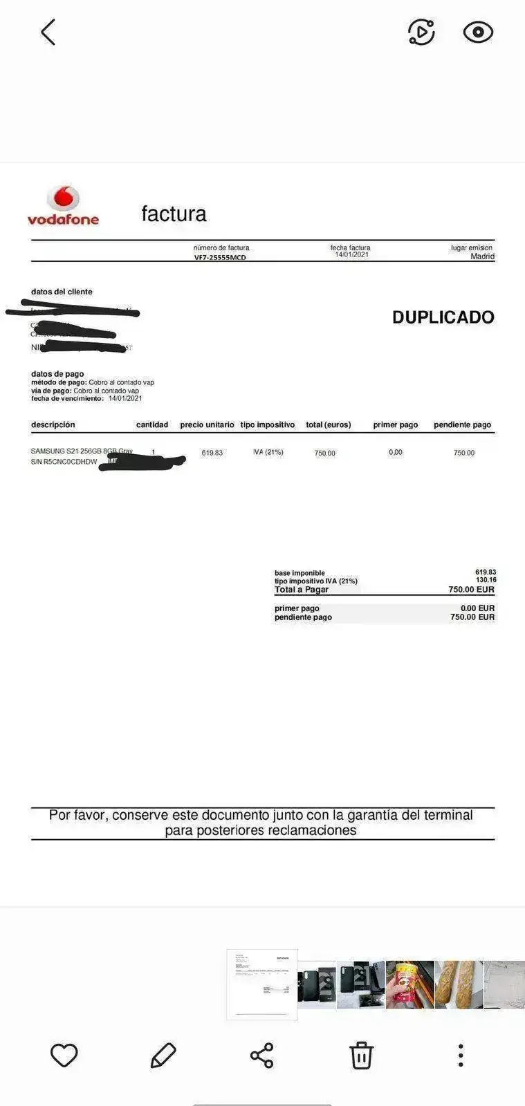 Como nuevo, factura del 14/01/21