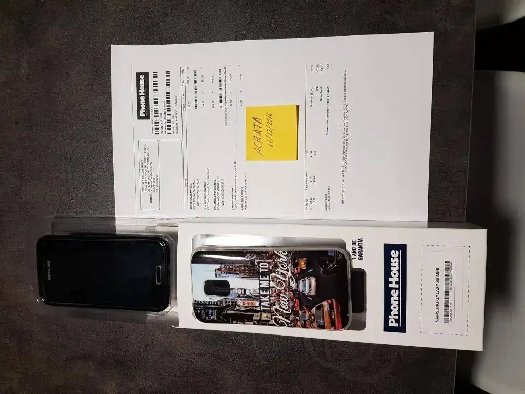 Vendo este teléfono SAMSUNG S5 MINI. Lo compre para usar mientras reparaban el mio. Es de noviembre de este año, y se adjunta factura de PHONE HOUSE donde se acredita. Son usados, pero revisados por esta empresa y los venden con su cajita de la casa y garantía. Me ha funcionado perfectamente, y una vez recogido el mio (pantalla rota), lo vendo, porque ya no lo usaré, y el resto de mi familia son APELIANOS. Le puse protector de pantalla, y su funda de la parte de atras, una seria y otra más fashion, que también la envio. Claro hacer una foto de la pantalla (que tiene su protector), siempre da como resultado que parece tiene manchas o señales, pero esta en perfecto estado.