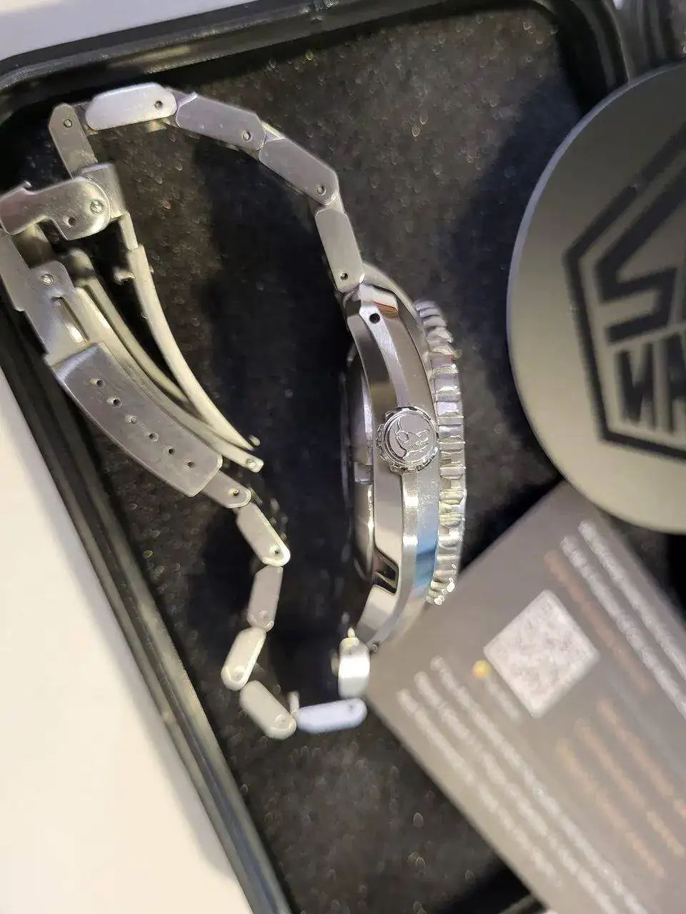 Vuelve a la venta este San Martin MM300, que, aunque se vende como un homenaje al Seiko Marinemaster 300m, la verdad es que no es tan alto como el original, es bastante más bajo, 13,5mm, y, por lo tanto, no cabecea nada y es muy cómodo. Esto lo digo con conocimiento de causa, pues en mi caja esta el Seiko MM300