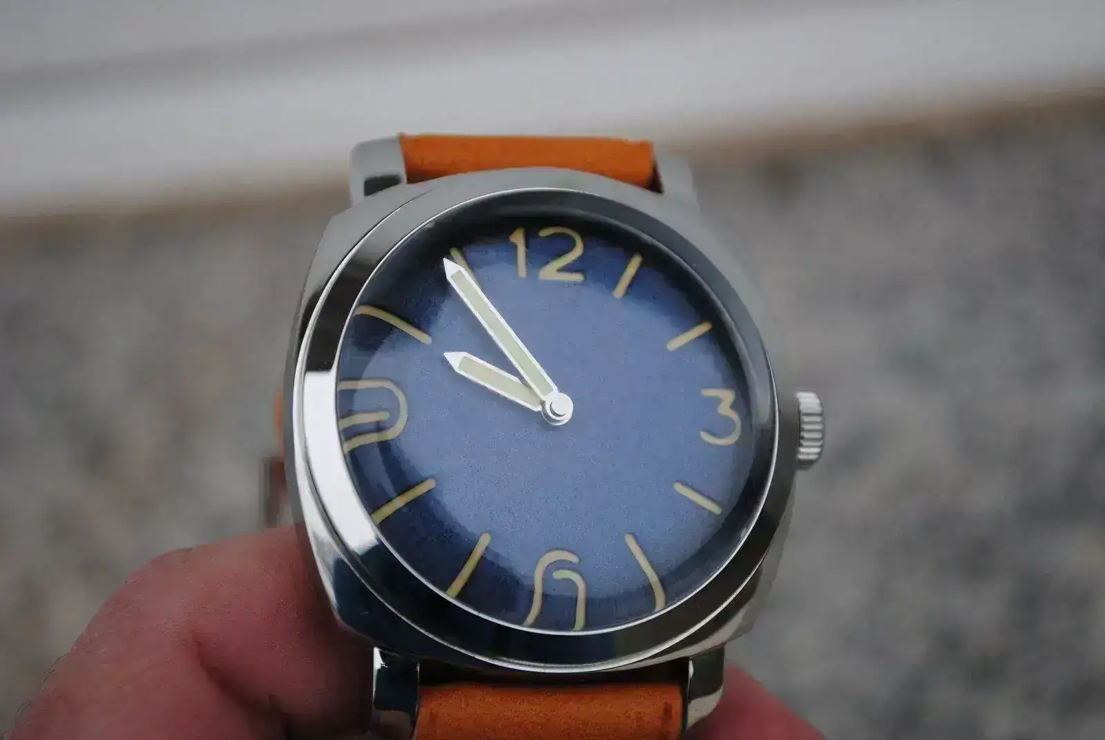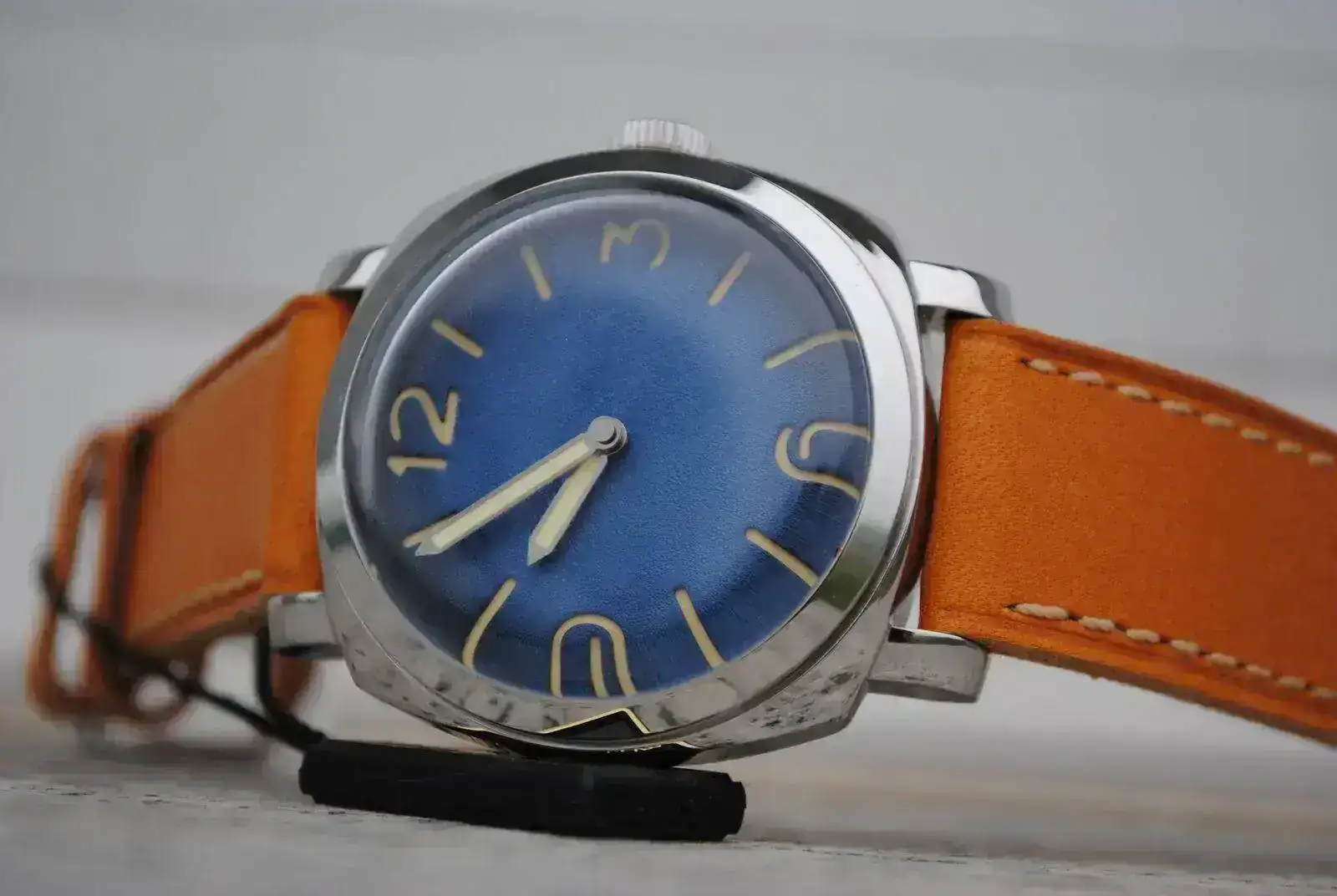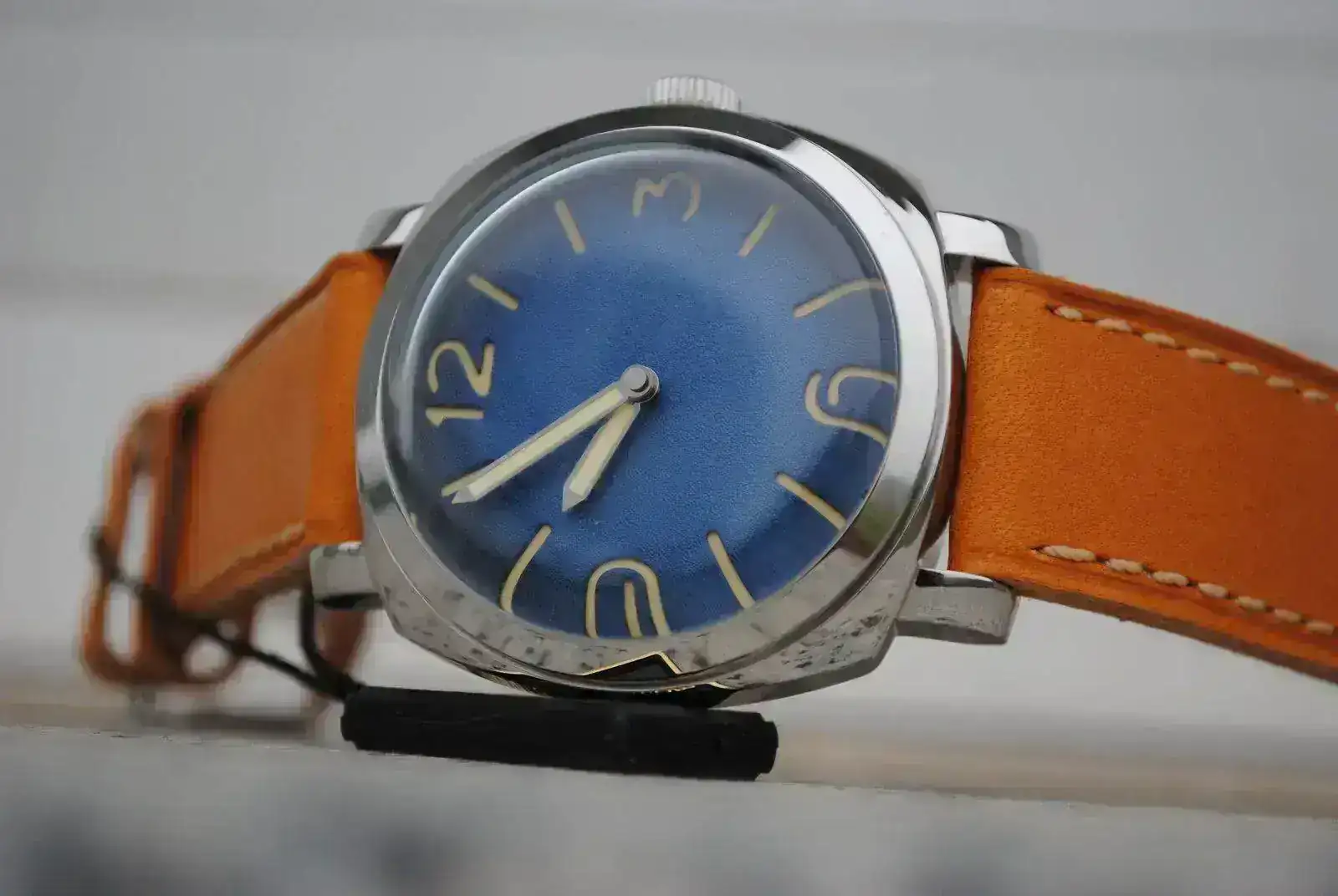 Esfera: Azul texturizada. Dial Sandwich, con índices y agujas lumeadas con lumen tipo vintage.