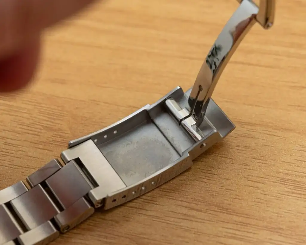 No es ya que sea equiparable a un brazalete de un reloj de 5k o 10k euros, es que sinceramente, no se cómo se puede hacer un brazalete mejor. Las aristas pulidas a espejo autentico, sin holguras, suave, microajuste en un cierre super super delgado y pequeño (compara eso com los micro ajustes gigantes de otras marcas de renombre), y el sistema de cierre es sencillamente comodisimo y solido, una pasada. Este brazalete de 130 euros puede ir perfectamente en un reloj de 100 mil euros y no dirias "han pinchao en el tema brazalete"