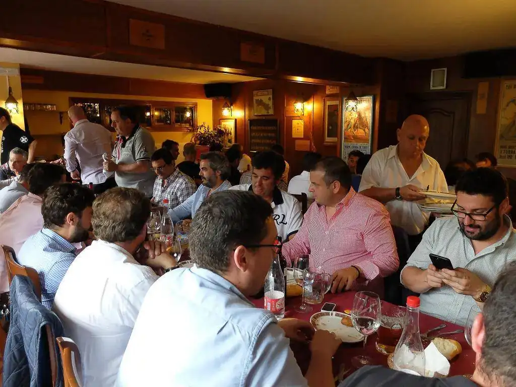 Con ello y al ser ya la hora nos dirigimos a Casa Miguel, restaurante que volvia a ser sede de la comida de la reunión a petición popular y la verdad es que fue como si estubiesemos comiendo allí todos los meses, nos volvimos a sentir como en casa, comedor para nosotros, total libertad de entrar, salir , cambiar de sitio... y comida como si no hubiese mañana