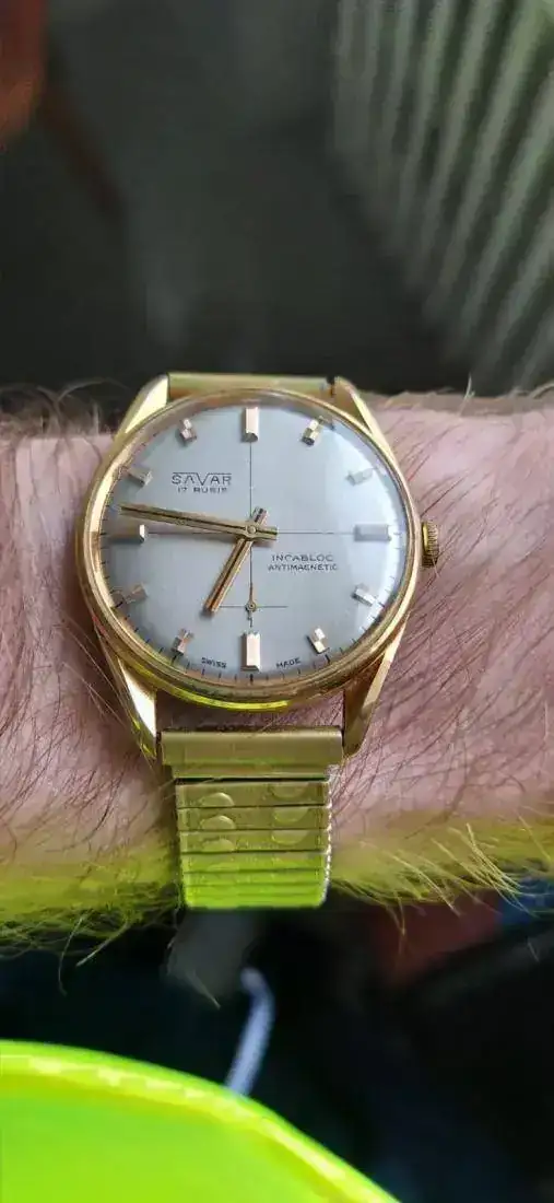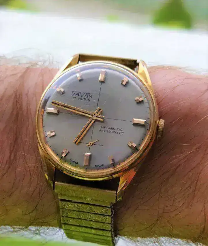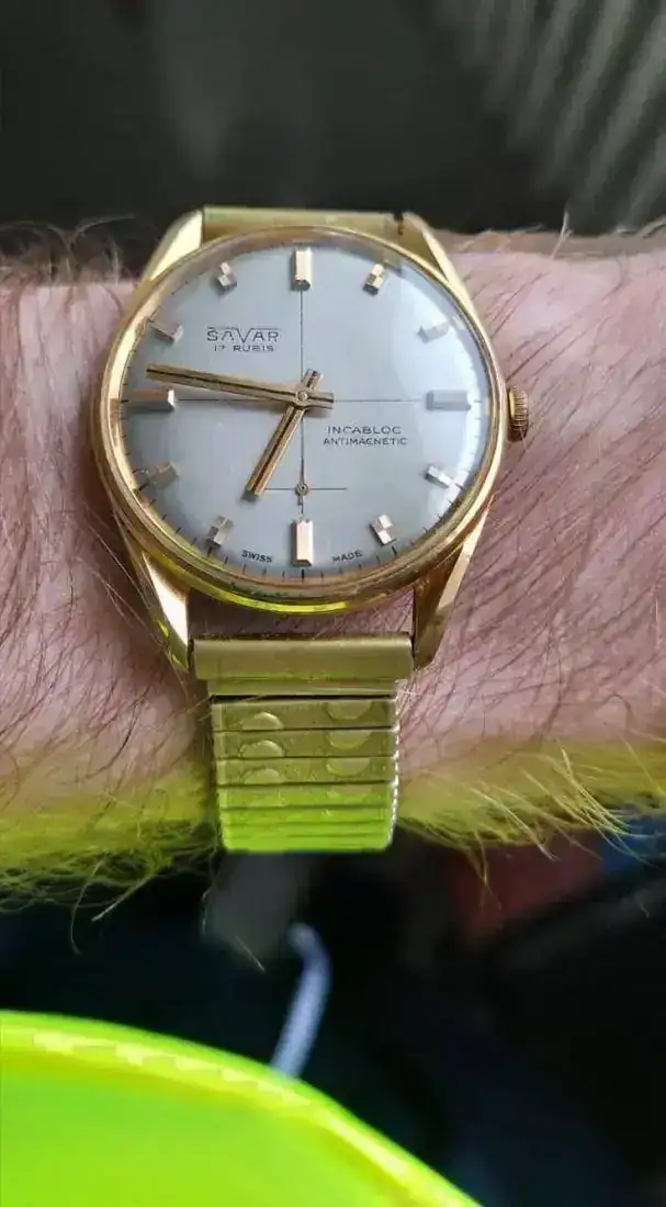 A finales de los años 60 la empresa comienza a montar relojes de pulsera con movimientos suizos y franceses, poniéndoles su marca. Según he leído, Savar hacía buenos contratos con los joyeros de la zona, ofreciendo unos márgenes de venta para el joyero bastante cuantiosos. Por ello, el propietario de la tienda compraba lotes de varias unidades, cuanto mayores más baratos le salían y era común ver los Savar en los escaparates ya que cada venta de uno de sus modelos era un buen negocio.