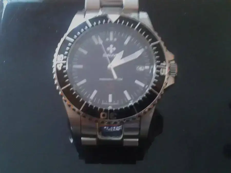 El reloj es un relojazo.Caja de acero,con tapa trasera y corona roscados.Cristal zafiro en frontal y trasera.Bisel de buceo inedireccional de 120 click,negro, a juego con la esfera.Tamaño de la caja,43 mm corona incluida,lo que lo hace apto para el 90% de las muñecas del foro.Agujas y marcadores super-luminosos.