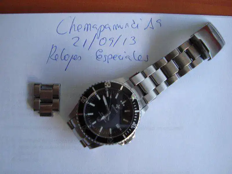[font="]el unico inconveniente que tiene el reloj es su dotacion no la encuentro por mas que la he buscado, es decir, no cuentro la caja ni la documentacion del reloj. Lo unico que entregaria seria el reloj y ademas dos eslabones sobrantes que estan sin pulir (que por suerte estaban en la caja de los relojes si no tambien se habrian perdido con la caja original del reloj). El armis esta colocado para mi muñeca de 17,50 cms con lo que añadiendo los dos eslabones mas el juego del cierre del armis, este podria valer para una muñeca de 19 cms como maximo aproximadamente.[/font]
