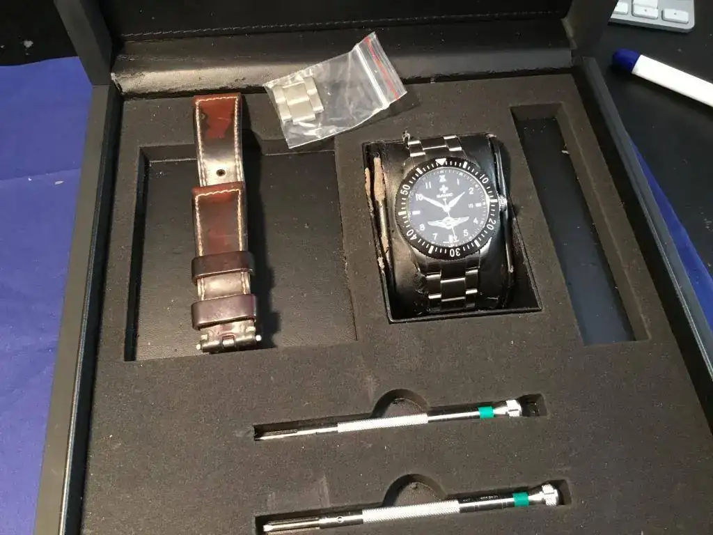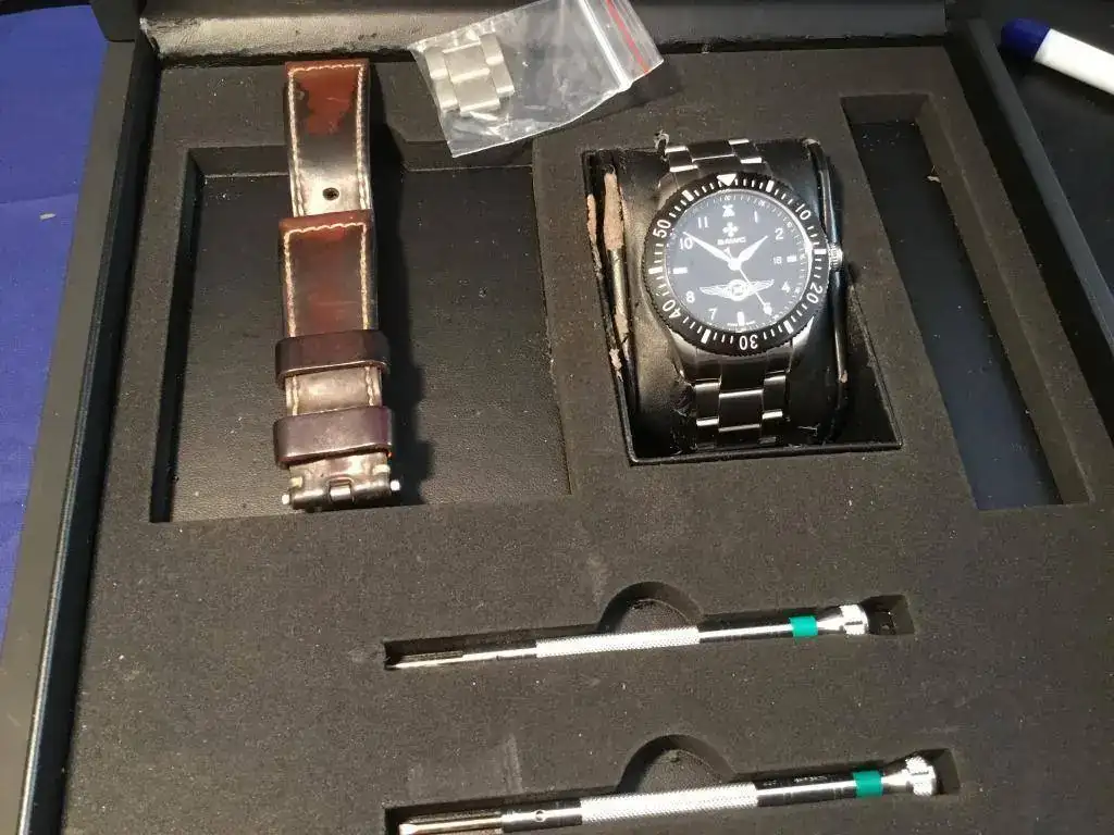 Brazalete: Acero y de piel, aunque éste último está deteriorado.