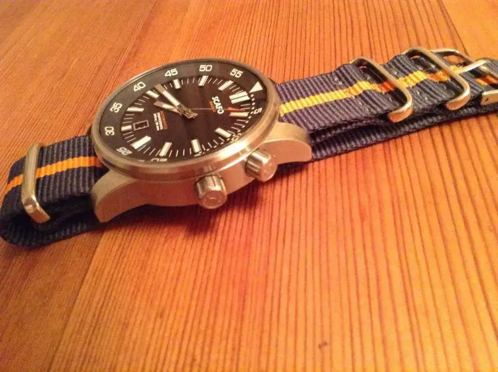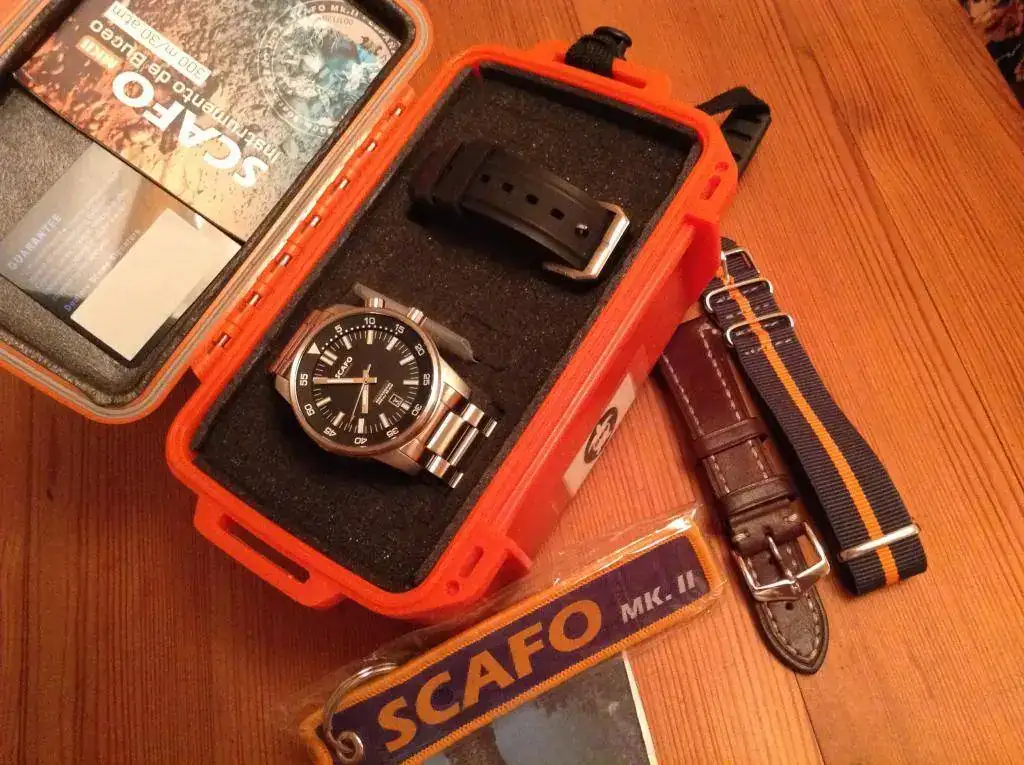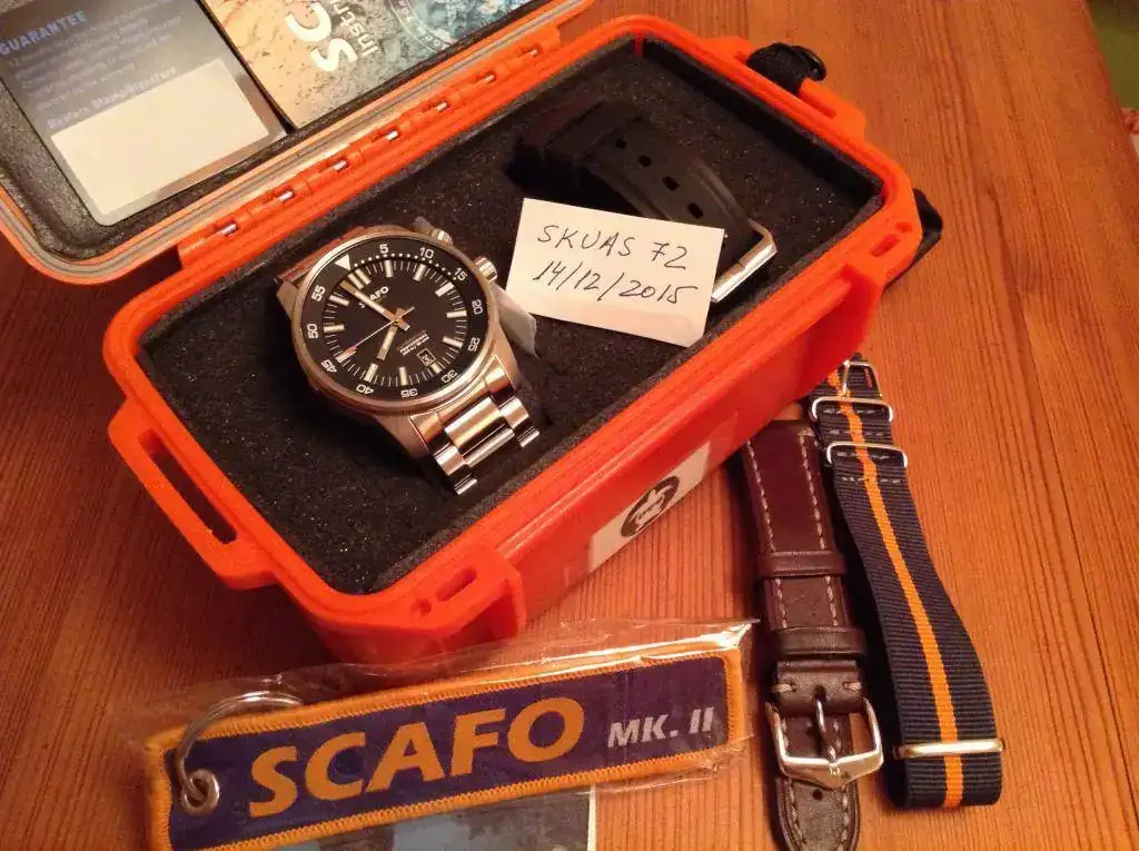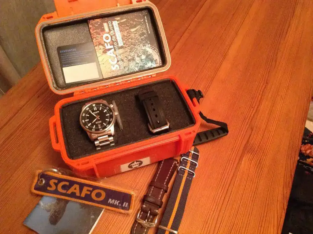 Pongo en venta mi Scafo Mark II. Un reloj de acabados buenísimos y de serie escasa, 120 unidades (he tenido Crepas, Helberg y Zixen, no teniendo nada que envidiar a los ninguno de ellos). Tiene ligerisimas marcas de uso, algunas marquitas en las garras (ver fotos) debido a los cambios de correas. Le pongo de precio 575 euros (el más barato que ha salido), un precio de derribo más si contamos que además de su dotación, cuenta con una nato nueva y con una Hirsch liberty en excelente estado. Me interesa sobre todo la venta, para cambios su valor será de 650 euros.