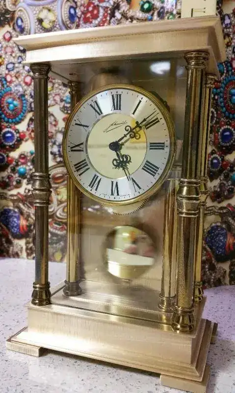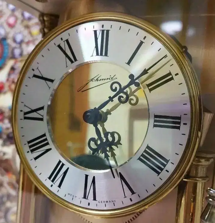 Pongo a la venta éste excelente reloj SCHMID con movimiento manual 8/15 días cuerda, VINTAGE AÑOS DEL 65 AL 70, CON CAJA DE BRONCE TOTALMENTE MACIZA , CHAPADA EN ORO 18K. CON ORNAMENTOS, SONERÍA........