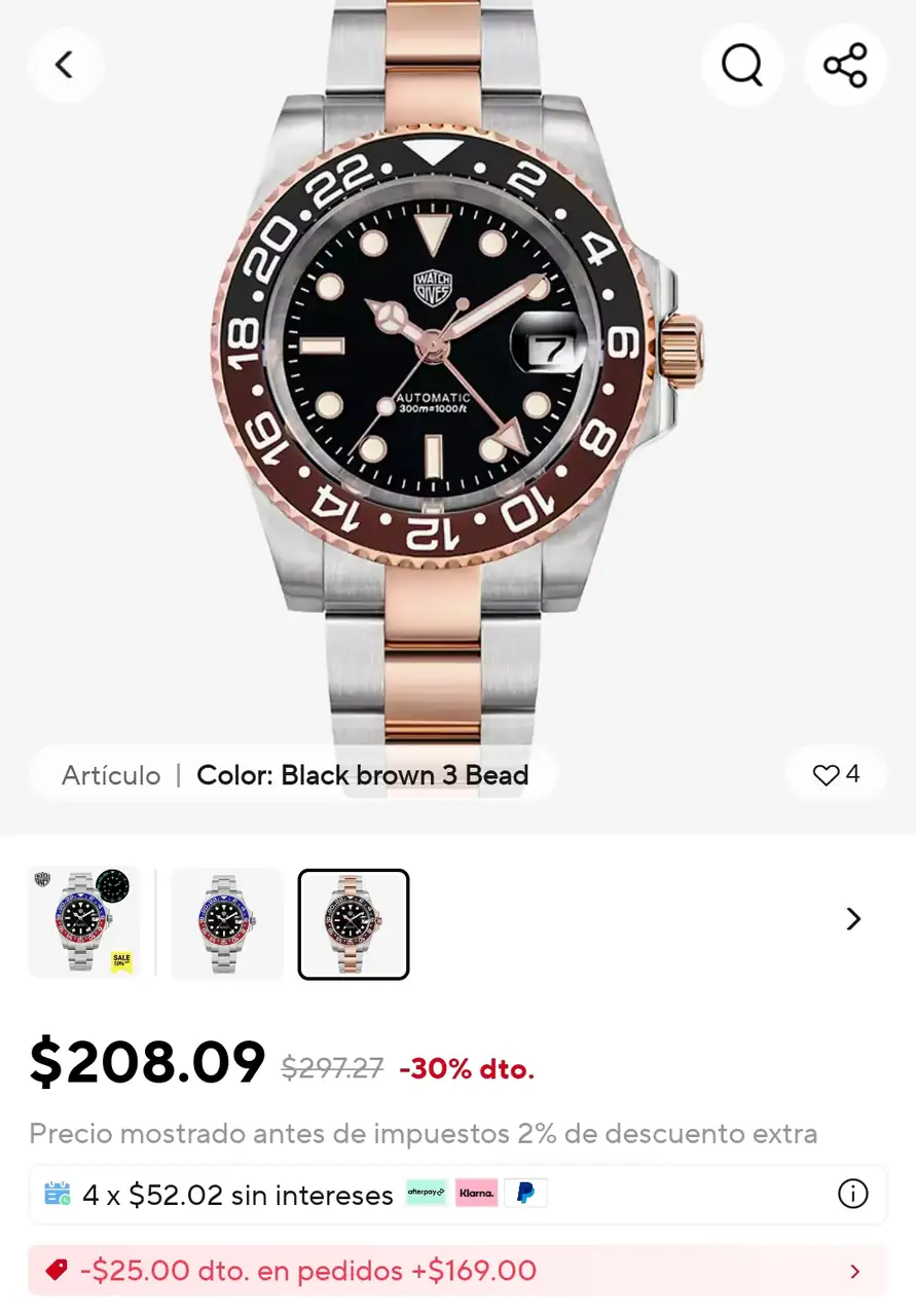 Parecido tienes el San Martín homenaje al BB58 GMT. Son los mismos colores con una forma un pelín diferente. A mí me gusta más que este.Hola chicos he visto este modelo gmt de la marca watchdavies pero en la propia pagina pone sold out y tampoco lo doy encontrado en AliExpress que esté en stock nose si alguno me puede ayudar o encontrar algún enlace de ali, era el que me llamaba para este 11:11 sino no se que alternativa buscar así en estos mismos colores que era lo que quería sino sin ser GMT nose que tal será el Pagani design 1639 doble color pero el lumen..