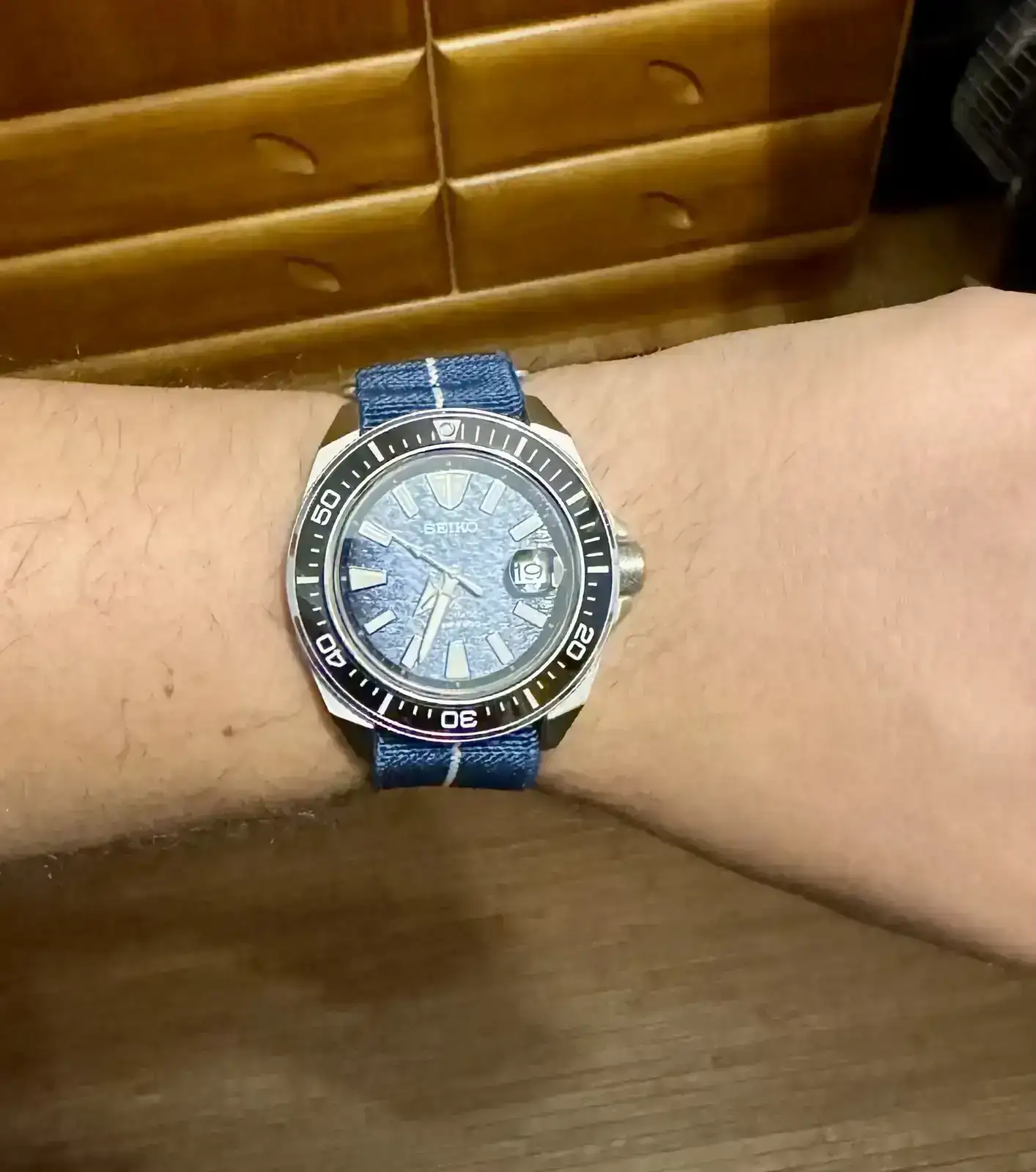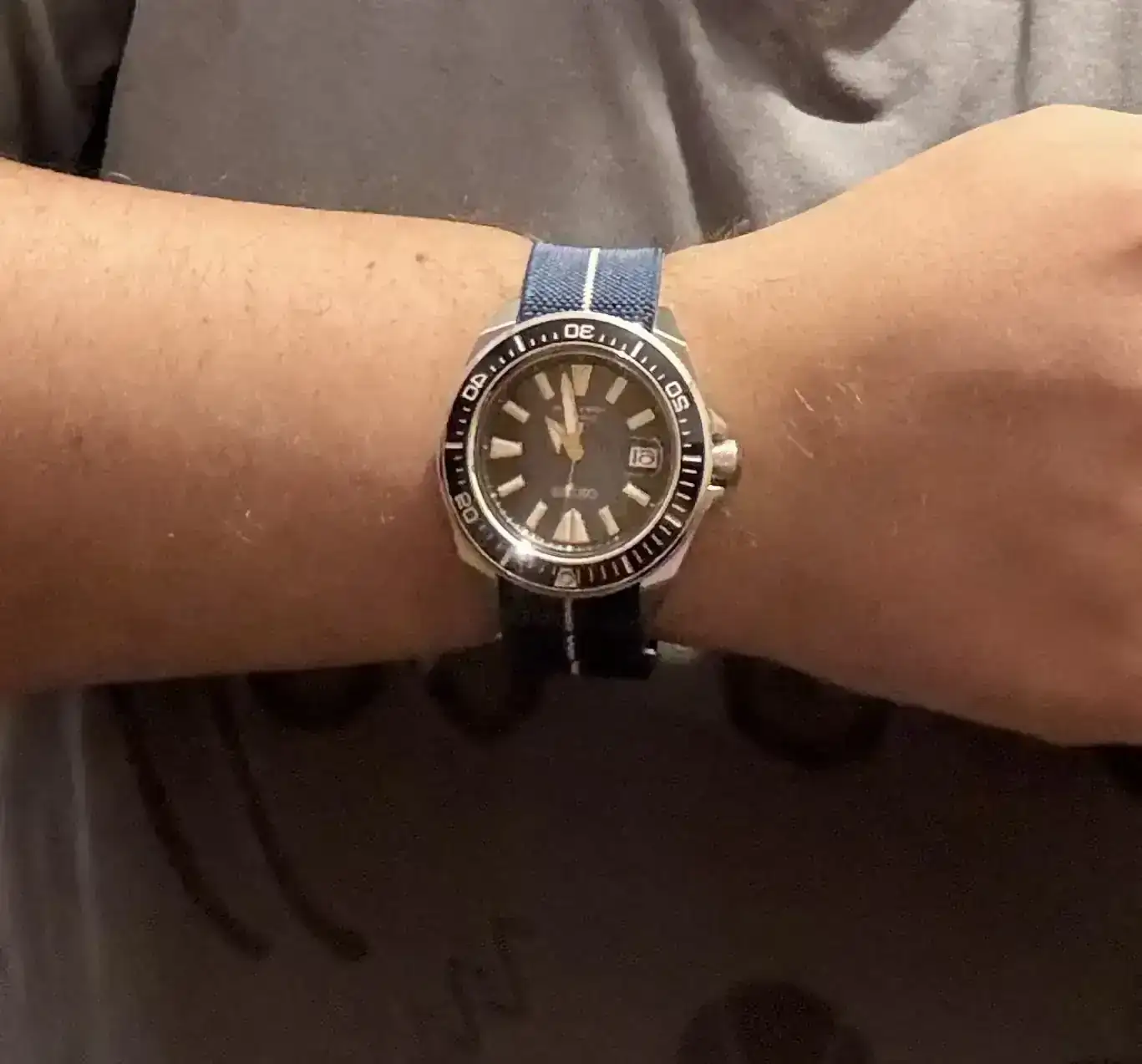 Tengo una muñeca más bien redonda, de entre 17 y 18cm de perímetro. El King Samurai (unos 48,7mm de l2l) me queda perfecto. Pero 50mm y con las asas rectas de este reloj… creo que iría muy justo. Llevo meses sumergido en dudas ante la imposibilidad de probarlo. He mirado en YouTube, en todo tipo de foros y redes sociales (tanto X como WatchCrunch) pero sigo en la duda.