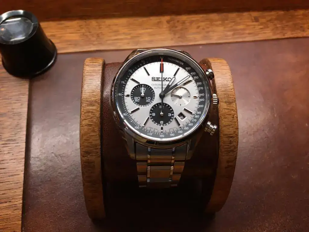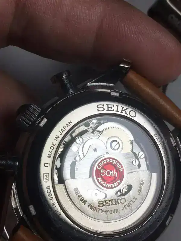 Puedo aportar esta foto de un seiko ( SEIKO Brightz SGDZ 013) Edición limitada que salió al mercado en 2014. Se lanzó para conmemorar el 50 aniversario del cronógrafo Seiko ( no tengo mas informacion ) en este caso y por las fechas , año 1964 , se trataría del "cronógrafo" a secas.