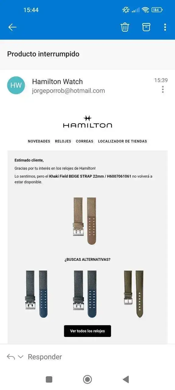 Pues bien, esta correa lleva sin estar disponible un tiempo y estaba suscrito a las notificaciones para wue me avisen cuando esté y hoy he recibido este mail: