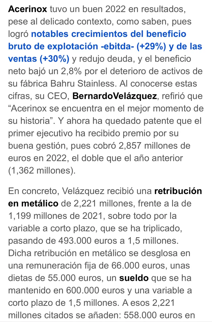 Ayer leía esto en El Mundo al CEO de Acerinox: