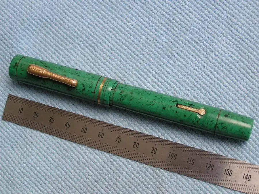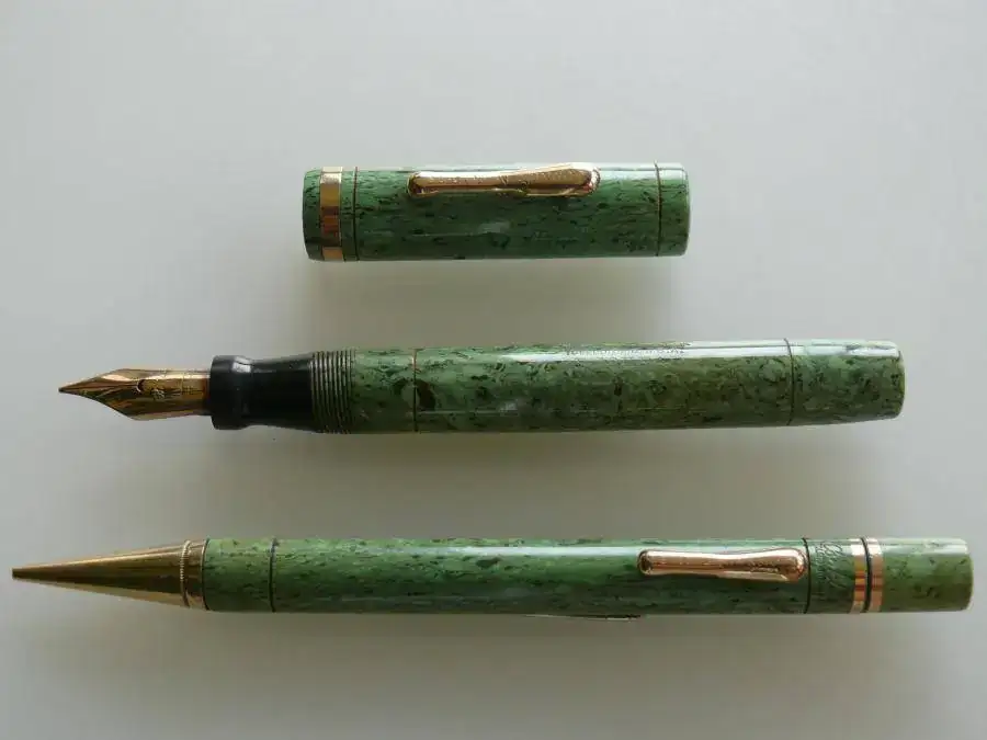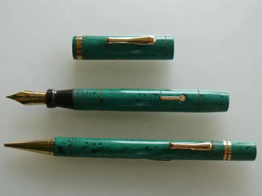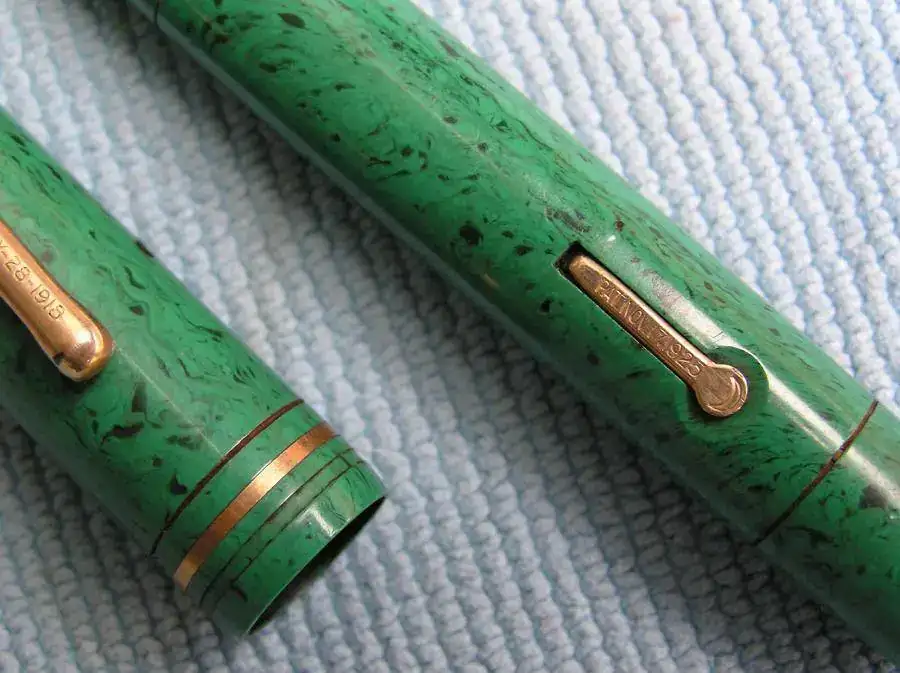 El modelo Endura se introdujo a finales de 1924 y se mantuvo en producción hasta el año 1932. Los primeros modelos eran en color Negro o Rojo liso. En 1925 se introdujo el Mahogany, en 1926 el Saphire Blue y en 1929 se producían también en colores como Black and Gold, Lime Green y Pearl and Black. La pluma que presento es de color Lime Green.