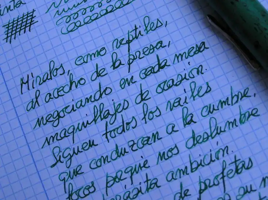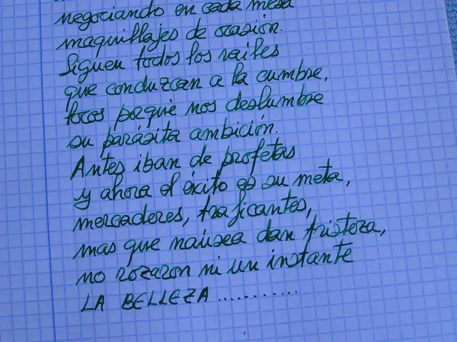 Voy a intentar poner una muestra de escritura aunque con mi mala caligrafía seguro que no se apreciará lo mas mínimo lo bien que escribe.