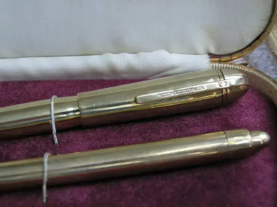Es de tamaño Standard, parece que este modelo sólo se hizo en este tamaño, y es de oro macizo tanto el cuerpo como el capuchón. La mayoría se suelen encontrar grabadas.