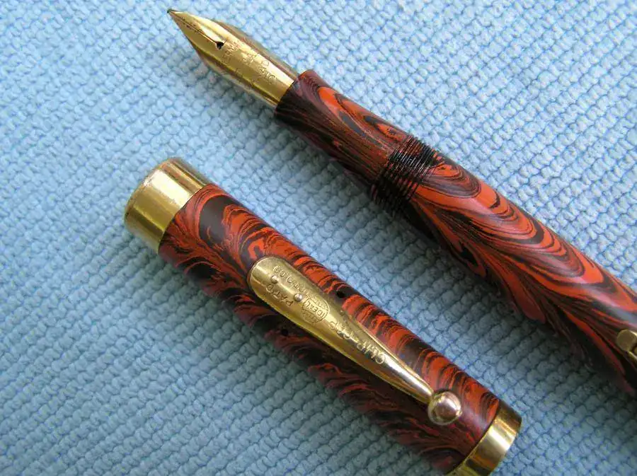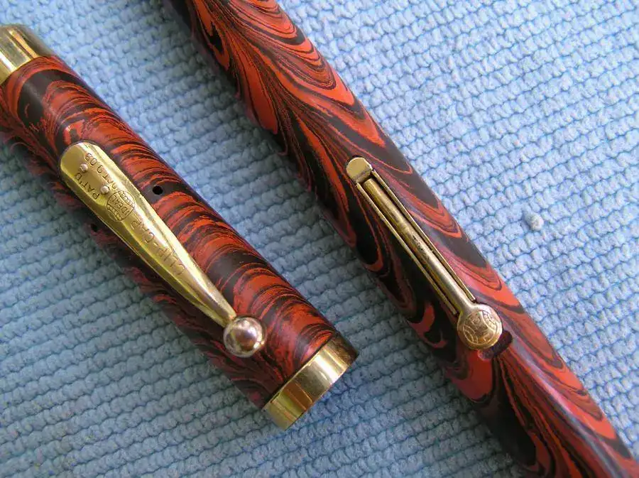 Waterman se resistió al cambio de la ebonita al celuloide como material para sus plumas, que algunas compañías iniciaron a mediados de los años 20, y continuó haciendo estas preciosas plumas hasta el año 1931.