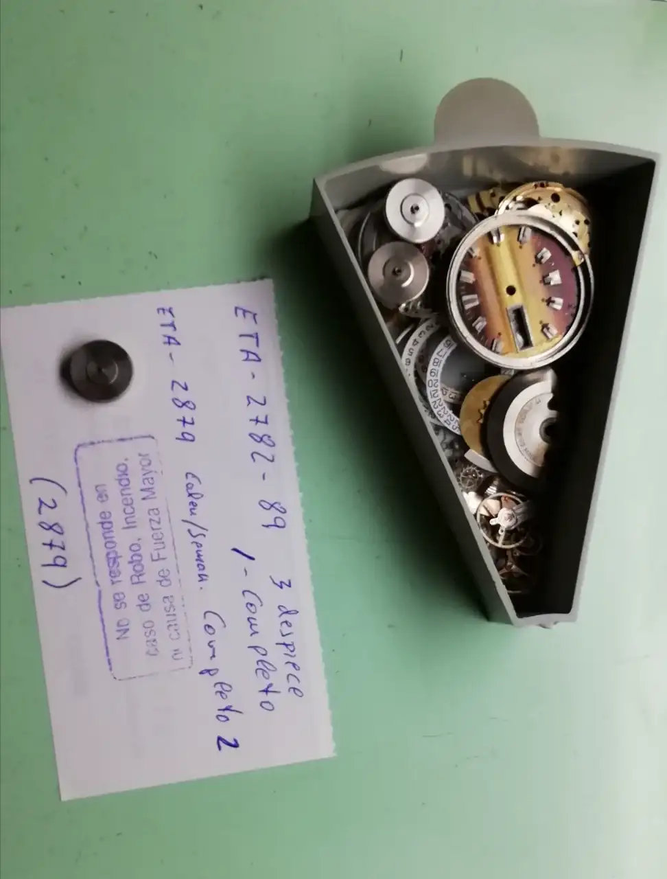Estoy haciendole un servicio a un ETA 2879 y al desmontar me he encontrado que el barrilete estaba abierto y saltó el muelle real al intentar sacarlo. No sé si ha sido en ese momento o si ya estaba pero el extremo pequeño del muelle real se ha partido, yo pienso que ya estaba porque el reloj tenia poca amplitud.