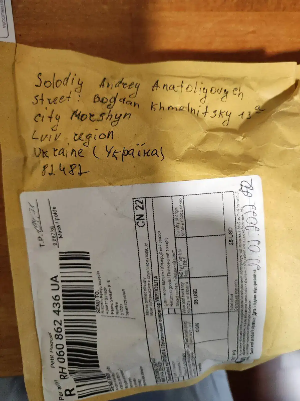 Sí, en el Stursmanskie como los de Correos estaban empeñados en que el paquete hasta que no me llegara era responsabilidad del remitente, Lo consulté por Whatsapp y en este caso, Demetrio me dijo que le explicara el problema por mail....por cierto, me acabo de fijar.