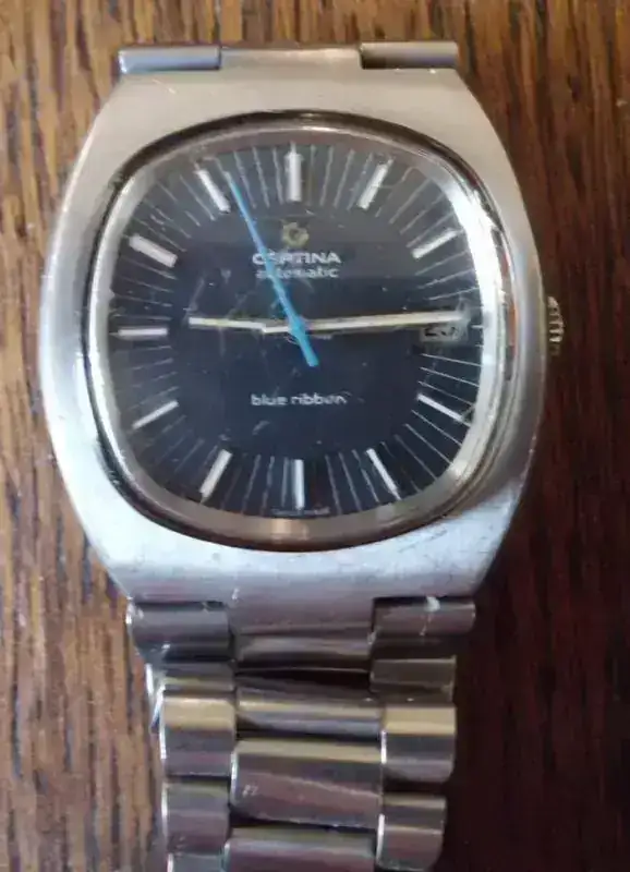 se vende certina blue ribbon automatico de los 70,,estado muy bueno,,todo original armix ,,cierre ,,plexy,, corona,,el plexy necesitaría una pulida, esta algo rayado,,de marcha va muy bien,,se regalaría con el otro certina de los 40-50 para reparar..el precio que le pongo son 125€ envío correo certificado incluido...contactar por privado..gracias..