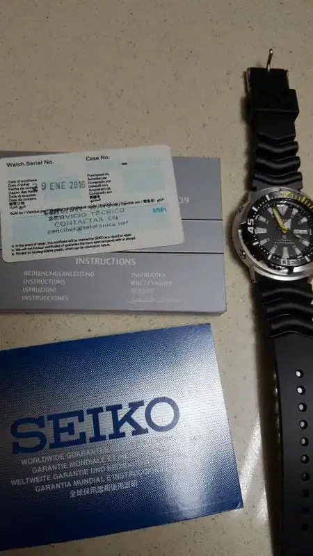 Hola vendo este Seiko BabyTuna ya que después de casi un mes no ha habido "filim", ha tenido mala suerte y ha tenido dos rocecitos como se puede observar en las fotos, pongo de antemano, que los dos roces y la raya en el cristal no se observan a simple vista, hay que fijarse, no obstante además de las fotos os pongo un vídeo que le he hecho para que comprobéis al cien por cien el estado. https://www.youtube.com/watch?v=jWejIK2y3so