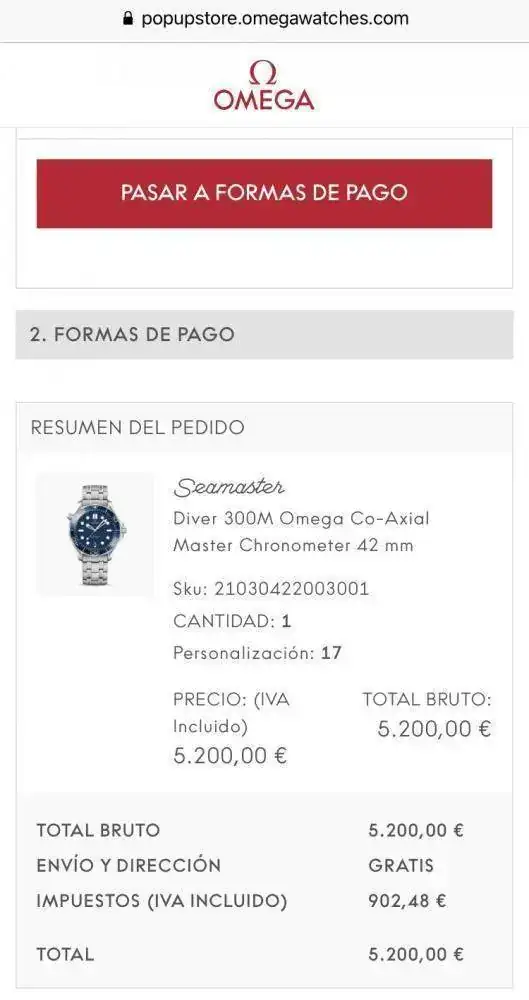 Omega te hace algún cambio , bisel , calibre o algo y te meten más de 1000 de subida.