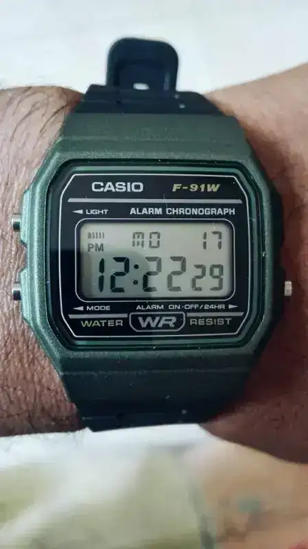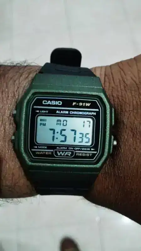 Aunque vestido de verde, sigue siendo el mismo clásico, no necesita mucha presentación. Casio F91w edición especial que acabo de adquirir. Ya tengo el azul, ahora sigue este.