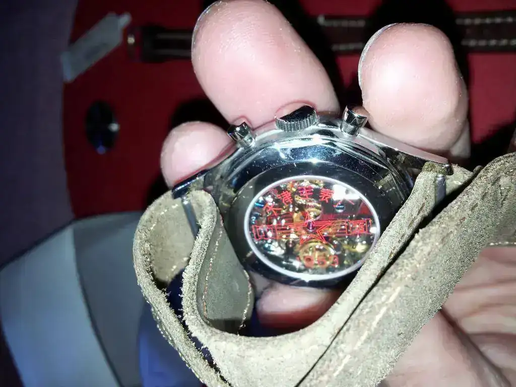 Lleva puesto el fondo visto que trajo y aparte lleva el fondo ciego. Tengo también la factura de compra que se envía con el reloj.
