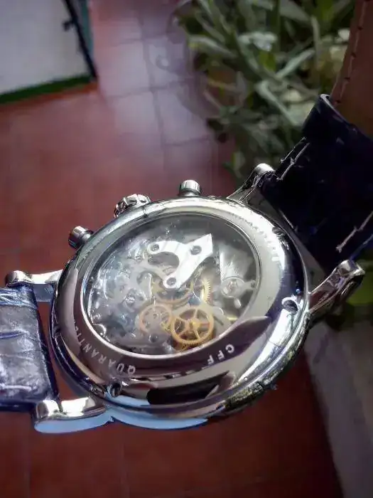 Pues saco para la venta este precioso y exclusivo chrono, rueda de pilares. En estado de reestreno, sin uso, correa piel y deplo. Conmemora los 40 años del club más antiguo de esta prestigiosa marca. Maquinaria vista y plexi en ambos lados.