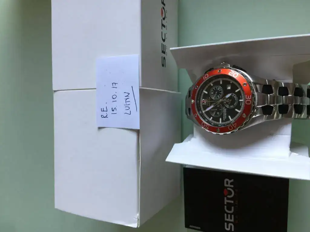 Saco a la venta este espectacular Sector cronografo suizo con cristal de zafiro, a estrenar, nunca puesto; tiene un pvp de 490€ como se ve en la etiqueta