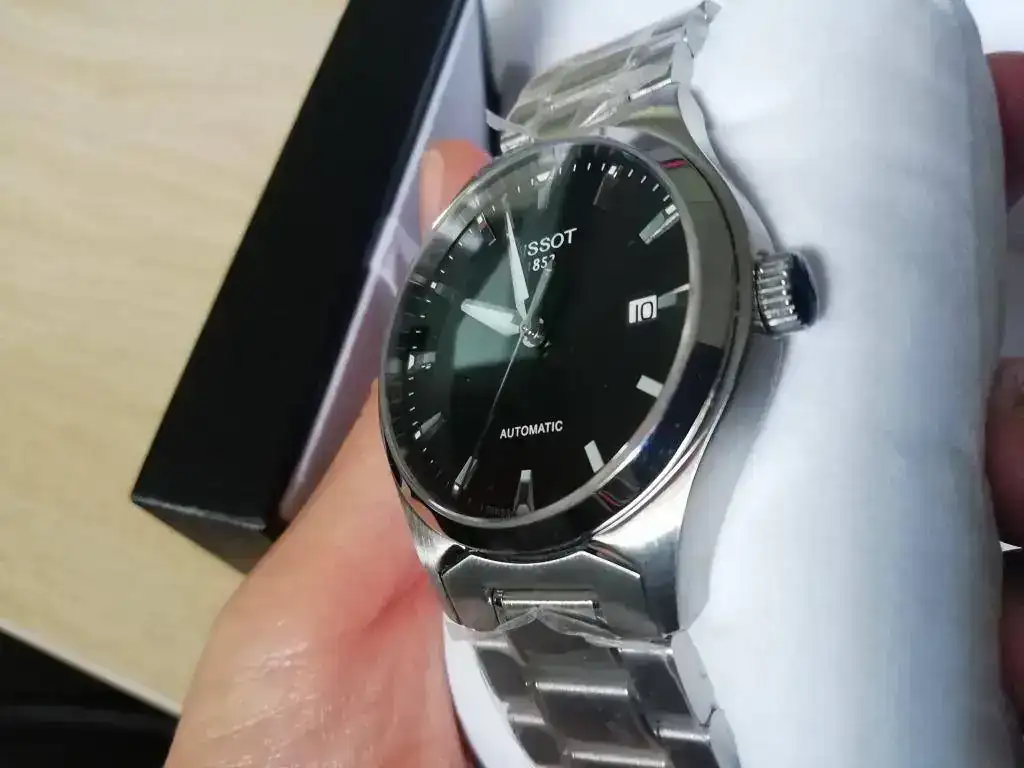 Tiene un diseño muy simple, pero posee ciertos detalles que me han encandilado, su esfera es muy limpia, pero los indices aplicados de formas trabajadas y pulidas le dan un efecto tridimensional muy chulo, el dial es negro satinado, al contraluz presenta un ligero cepillado vertical, muy sutil, y complicado de representar en fotos, sobre todo porque el anti reflejos brilla por su ausencia en su cristal de zafiro, es complicado sacar una foto sin que parezca un espejo, pero es realmente bonito, por último, la pequeña T en el contrapeso del segundero, un puntazo, ademas tiene lumen