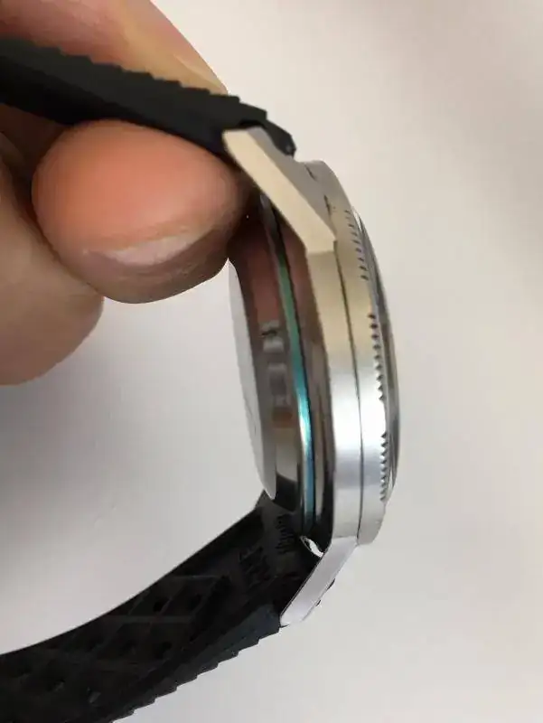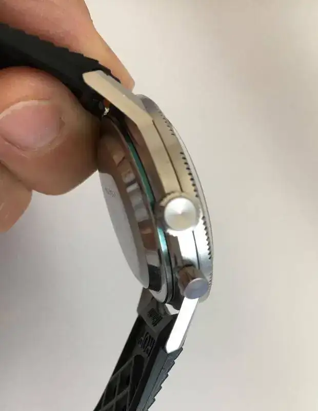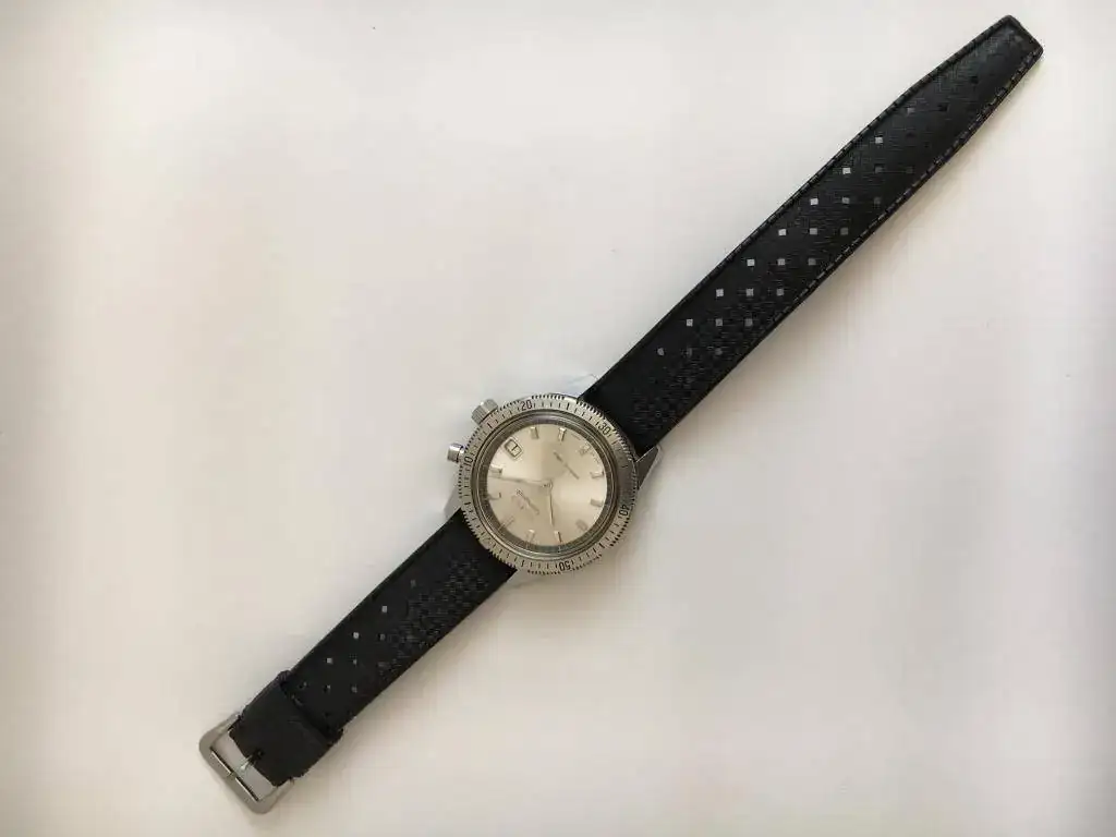 Junto con el reloj, acompaña una correa marca Tropic de final curvo que le queda de maravilla.