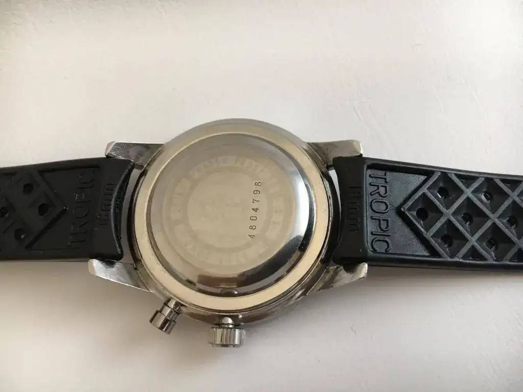 El reloj es 100% original y en un estado realmente bueno. Estos modelos podían acompañarse de diferente emblema en su trasera. En este caso es el caballito de mar rodeado por el texto explicativo. Logo que muestra el desgaste debido a los años y una reducida visibilidad, si bien puede apreciarse en alguna posición según la luz o en las fotografías al mejorar el contraste.
