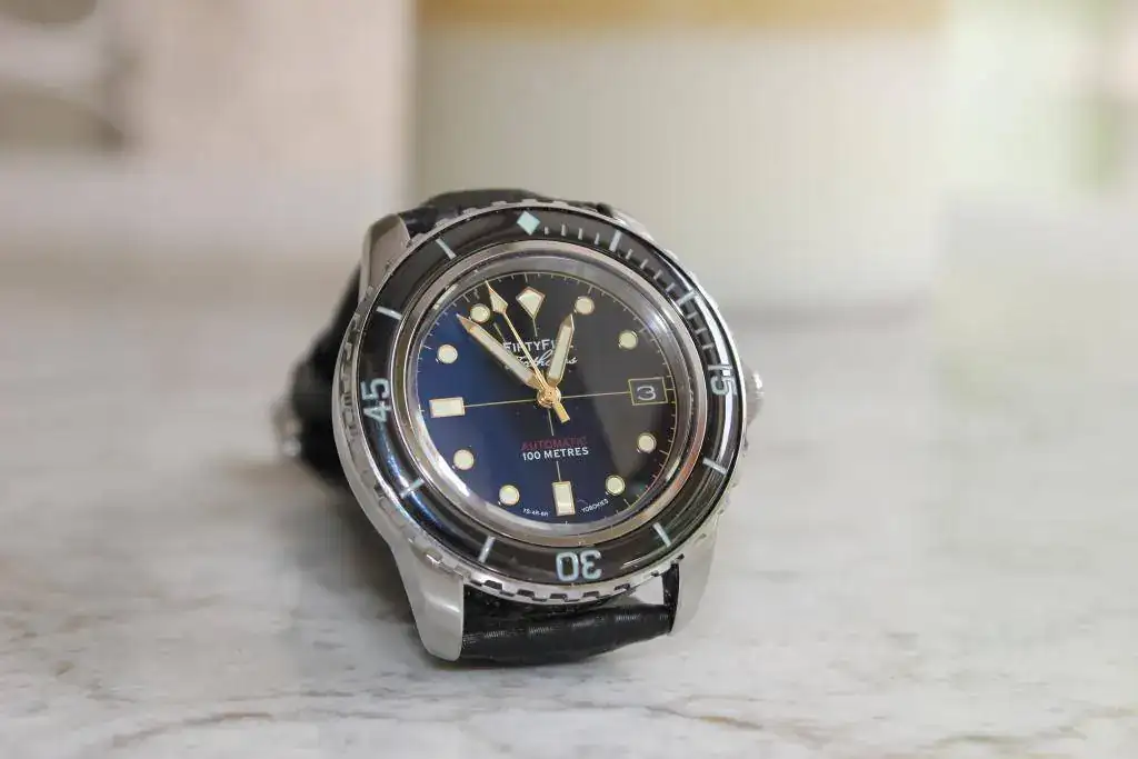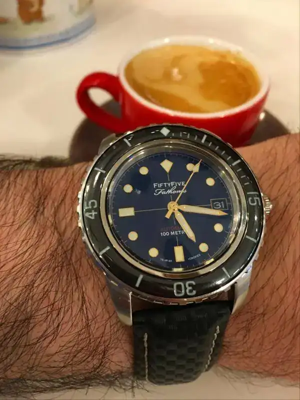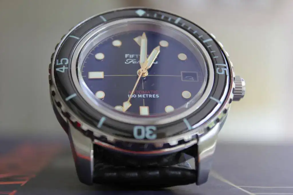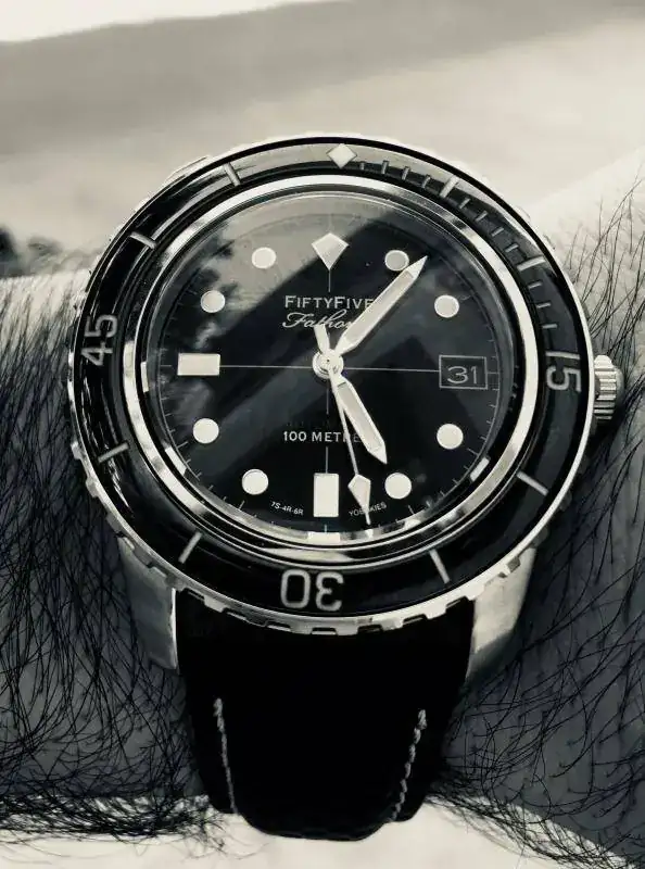 El término 55 Fathoms hace referencia al reloj al que homenajea pero ajustado por su resistencia al agua (55 Fathoms = 55 Brazas = 100 Metros).
