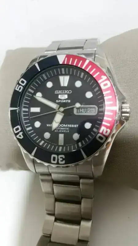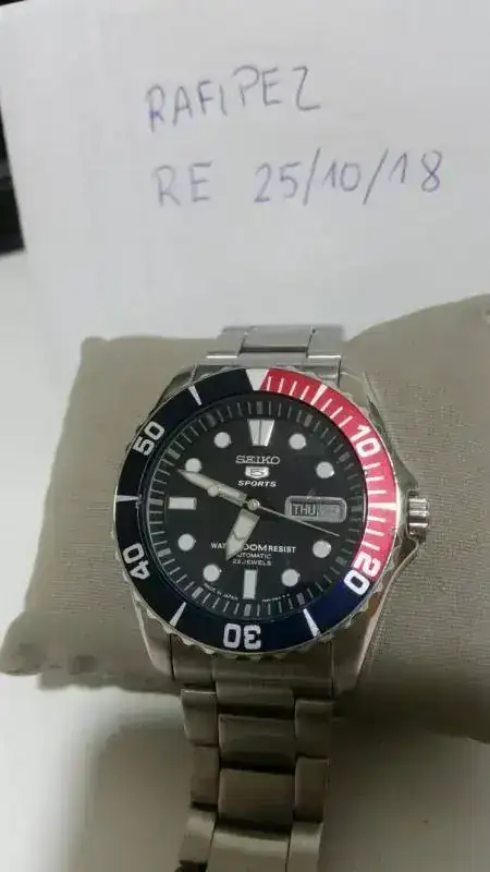 Se trata de un reloj 100 WR con bisel Pepsi en muy buen estado, pero no me hallo a los colores del bisel, y como a mucha gente le gusta esa combinación, lo ofrezco.