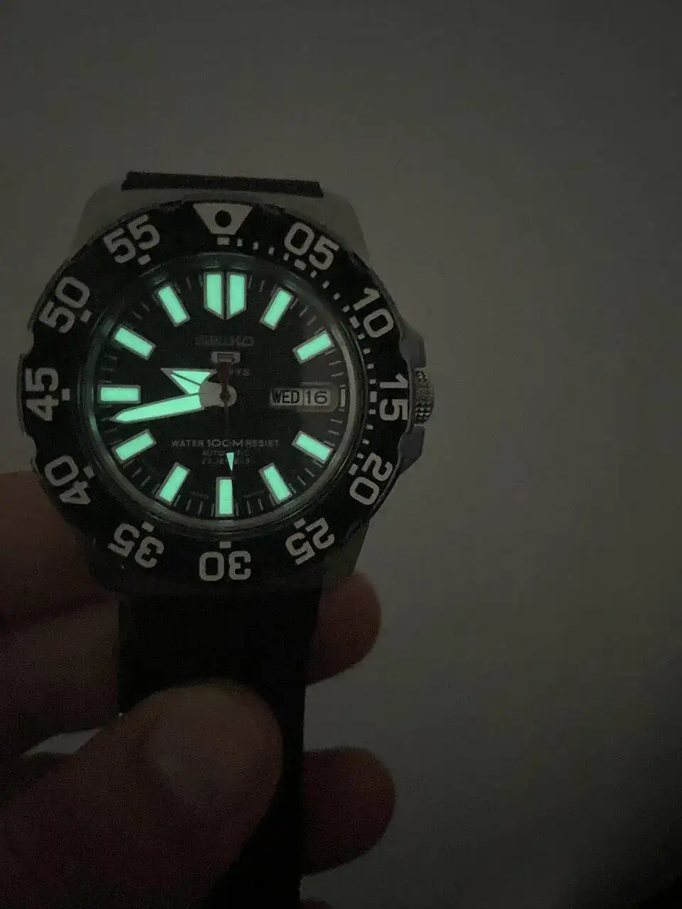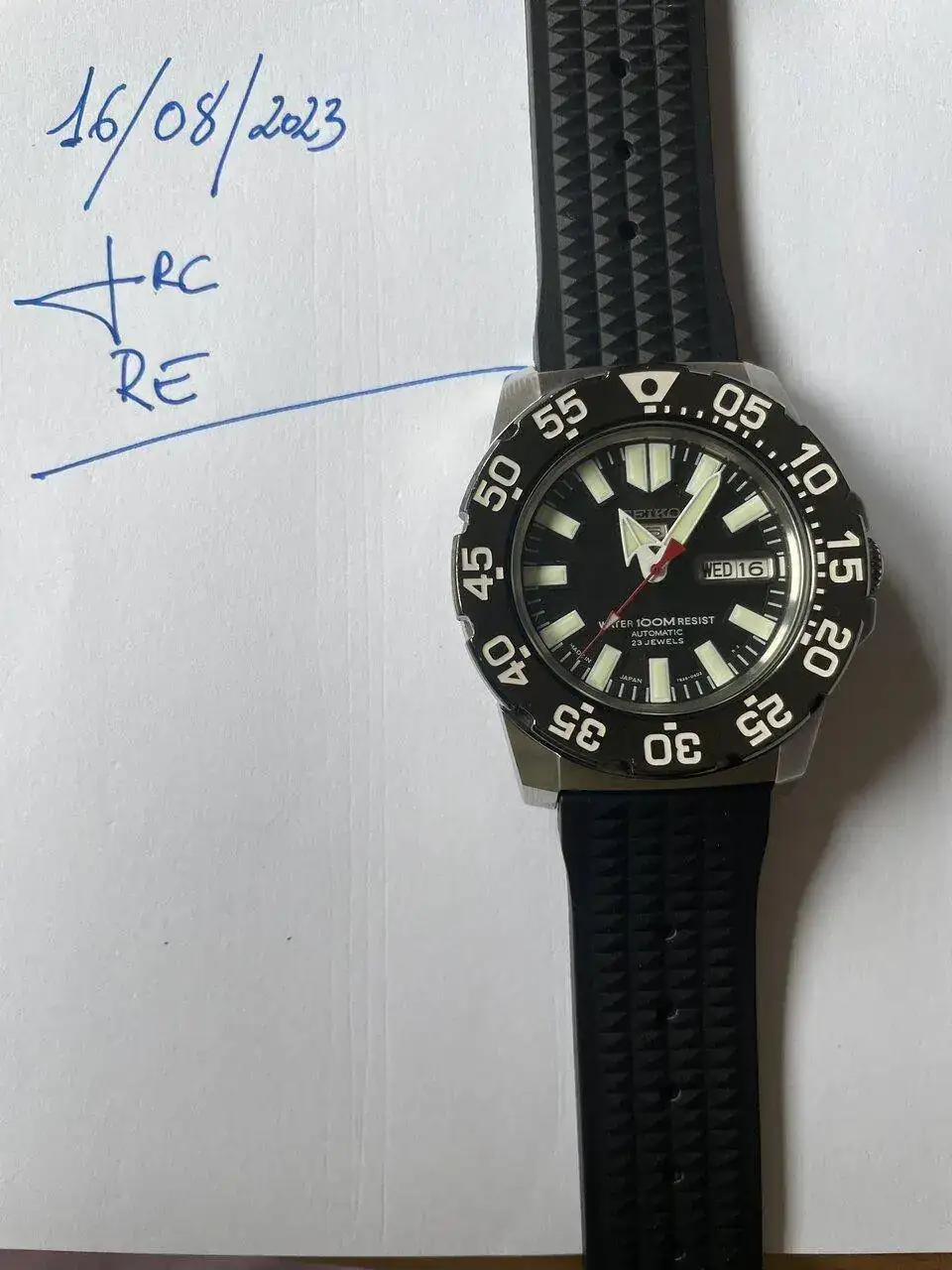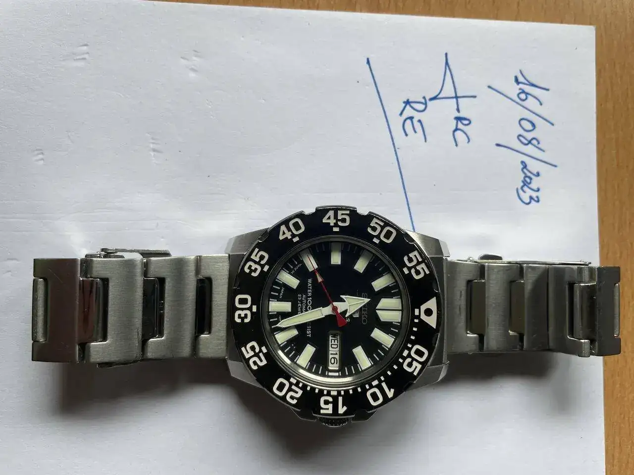 Saco a la venta este Seiko Mini Monster porque ya no lo uso. Quiero destacar que está usado y con marcas. Era mi reloj para ir a visitas de obras. Ahora que tengo otro de batalla lo saco para ver si le viene bien a algún compañero. Destaco su Lumen en la oscuridad, de las mejores que he tenido en mis relojes hasta la fecha. Por otro lado, intento que se aprecien las marcas en las fotos.
