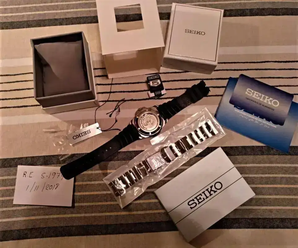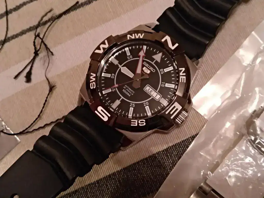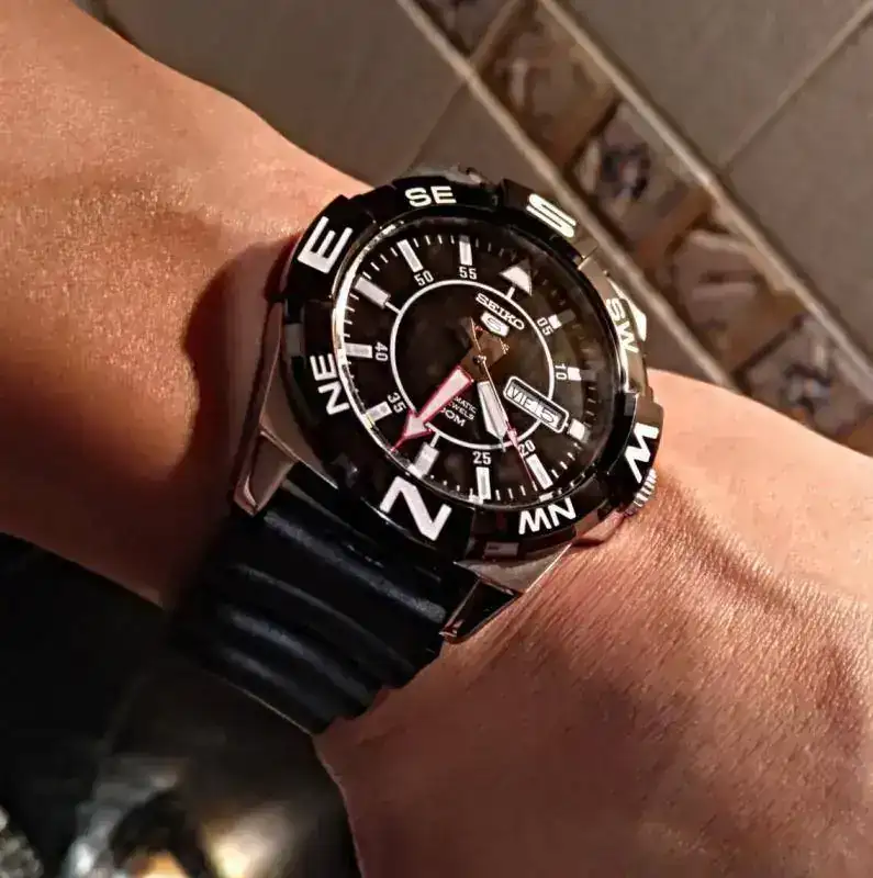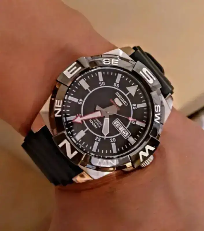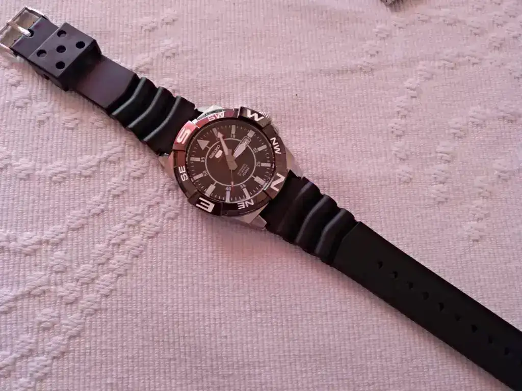 Hola a todos, pongo a la venta este Seiko 5 súper deportivo con una marcha excelente, adelanta entre 3 y 4 seg día, esta impecable, no diré nuevo pero casi, solo algunos pelillos sueltos que hay que fijarse mucho para ver y que menciono por los más minuciosos, cristal y bisel impolutos, bisel bi direccional con función compass, como el atlas, calendario en inglés y español, trae su manual, garantía por 2 años, estuche. Etiquetas, su armis y un caucho homenaje z22 que le queda muy bien, etc.