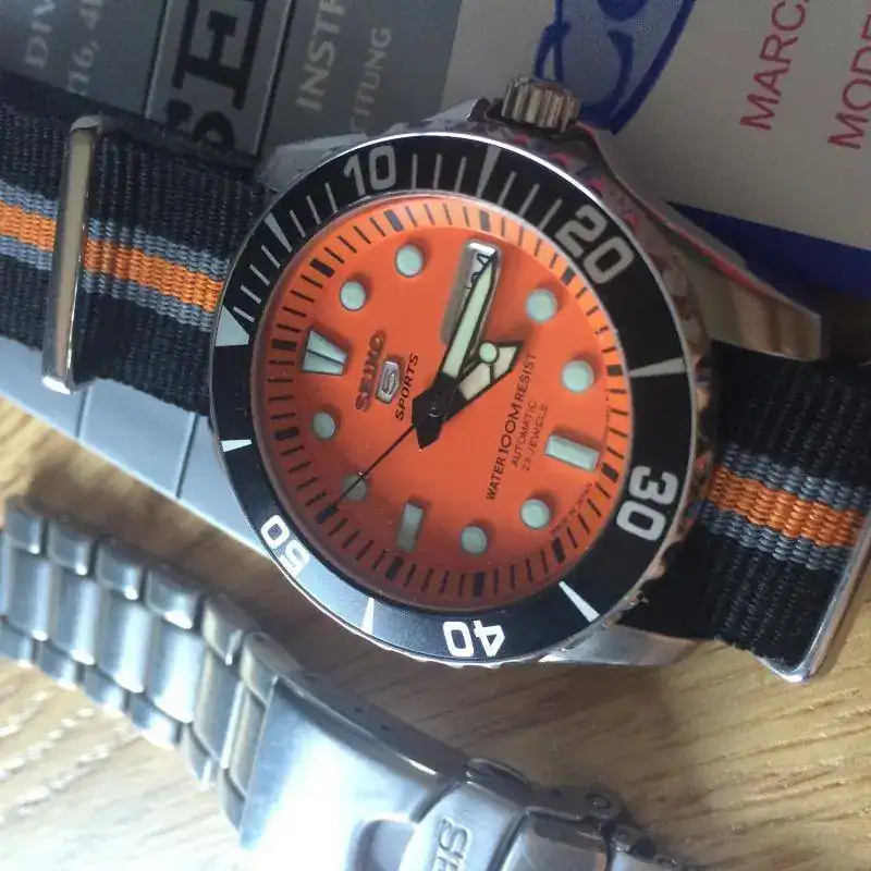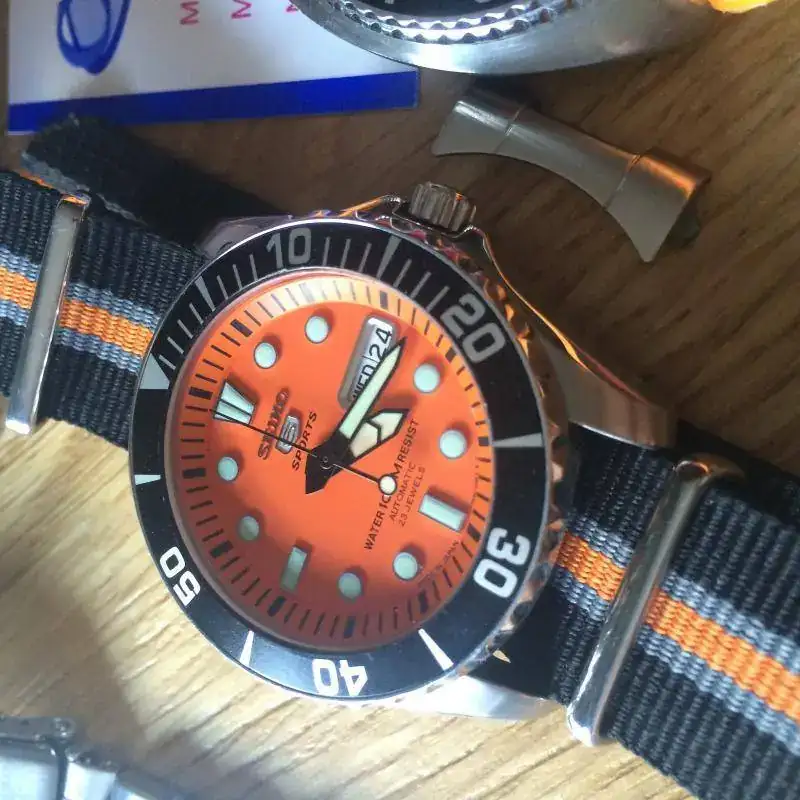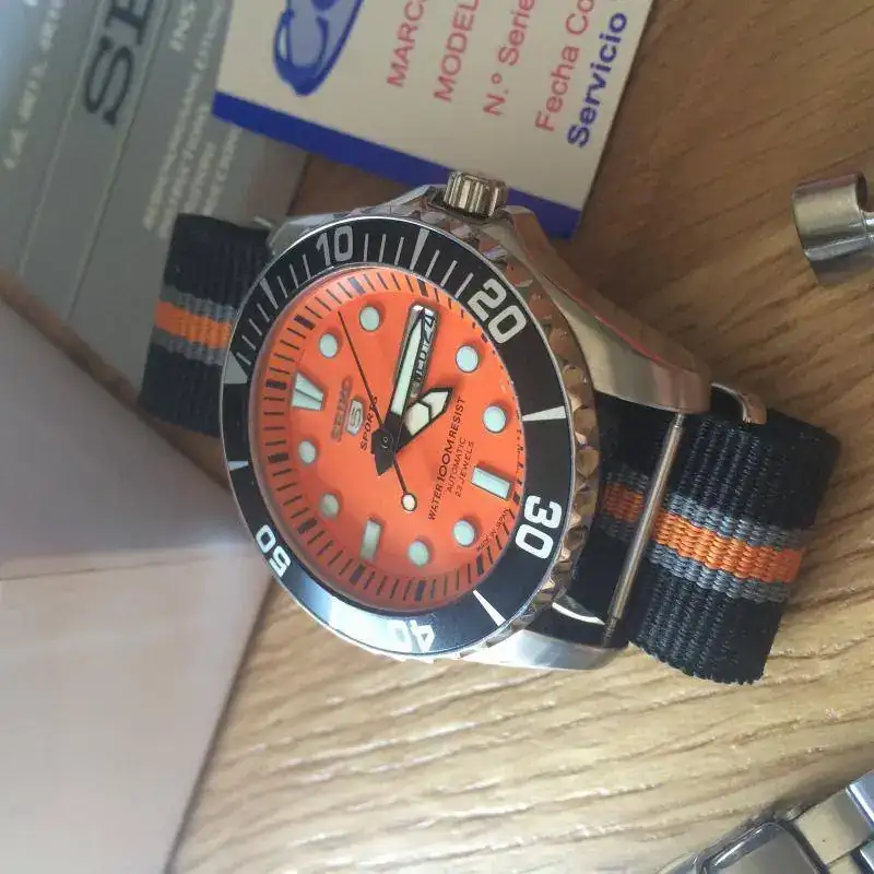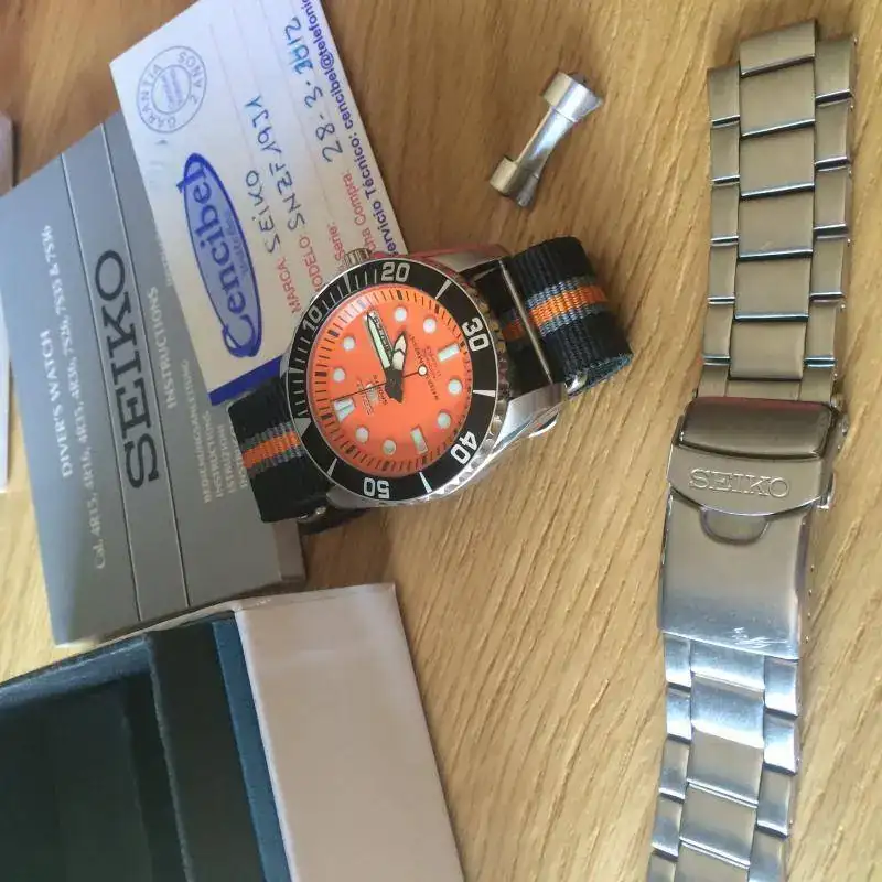Saco este precioso Seiko 5 Sports en un estado realmente bueno. Sin marcas reseñables, salvo las típicas señales de un uso moderado. Su funcionamiento es correcto.