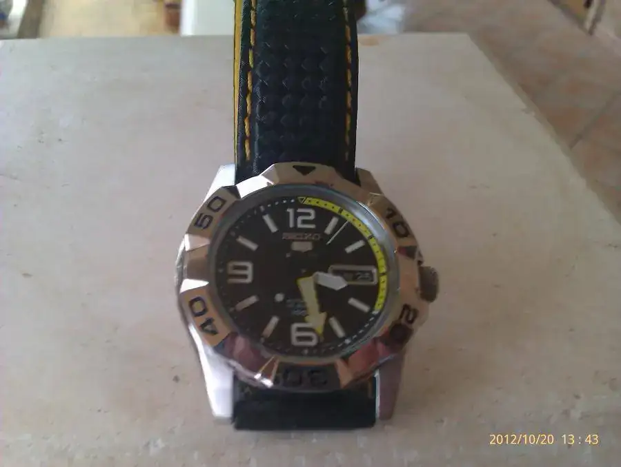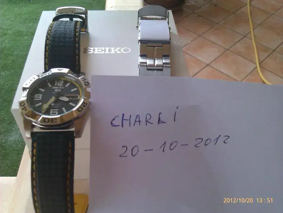 Hola buenos dias, otro que sale para hacer hueco, pongo a la venta este precioso Seiko con garantia hasta Mayo de 2013, con papeles, armis sin estrenar y la correita de carbono con pespuntes en amarillo que le va de vicio, el reloj tiene las tipicas microrayas en la zona pulida nada que no se vaya con una pasadita con los polvitos, ahi dejo unas fotos, una de internet y todas las caracteristicas del mismo.