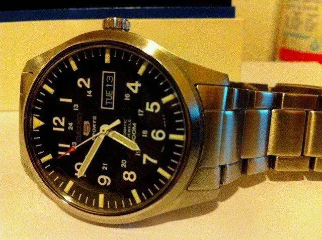 el estado del reloj lo calificaría en 9.5/10. no tiene absolutamente nada, típicos pelillos en el armis pero ninguna raya. se entrega con su caja original, tres eslabones sobrantes y tarjeta de compra.
